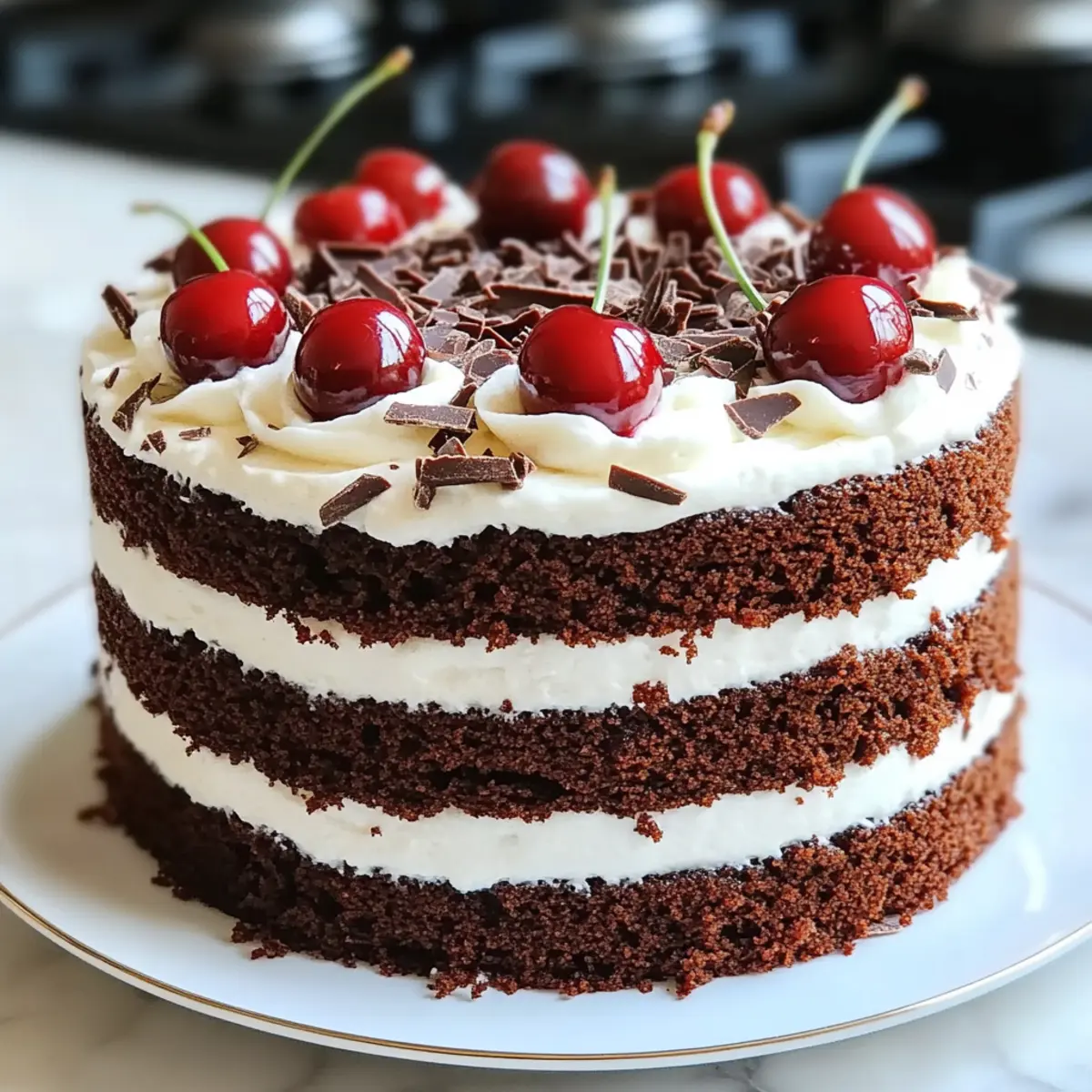 These Easy Black Forest Cake Recipe components are perfect for meal prep, allowing you to save time on busy days! You can bake the cake layers up to 24 hours in advance; simply wrap them tightly in plastic wrap once cooled to keep them moist. The cherry filling can also be prepared up to 3 days ahead and refrigerated; just reheat slightly before assembling to ensure it spreads easily. When ready to serve, layer the cake with whipped cream and cherries. Chill the assembled cake for 2-3 hours before indulging—this allows the flavors to meld perfectly while ensuring it remains just as delicious. Enjoy the ease of impressing guests with your beautiful Black Forest Cake!