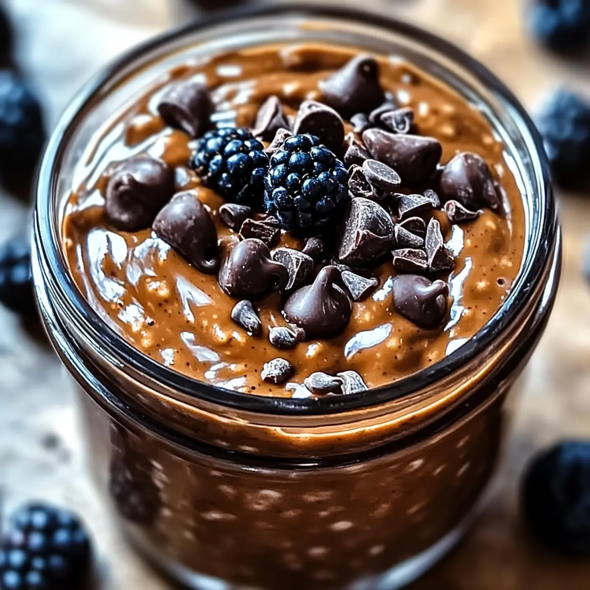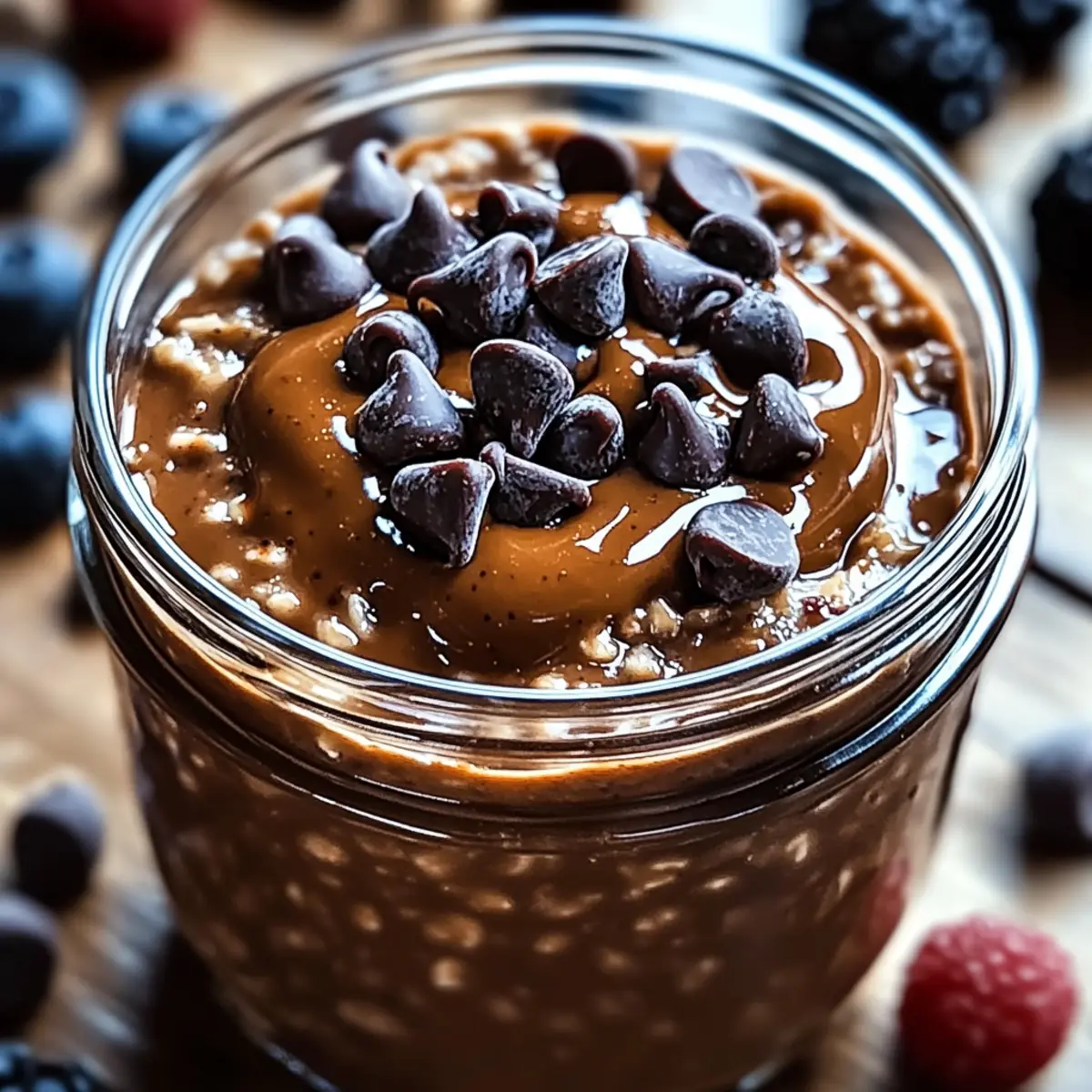 To finish, garnish your oats with the remaining mini chocolate chips, fresh berries, or a drizzle of nut butter for extra flavor and texture. Serve straight from the jar for convenience or transfer to a bowl for a delightful breakfast experience. Indulge in this healthy, dessert-inspired meal that will surely delight your senses.
