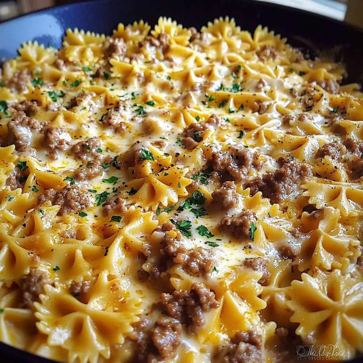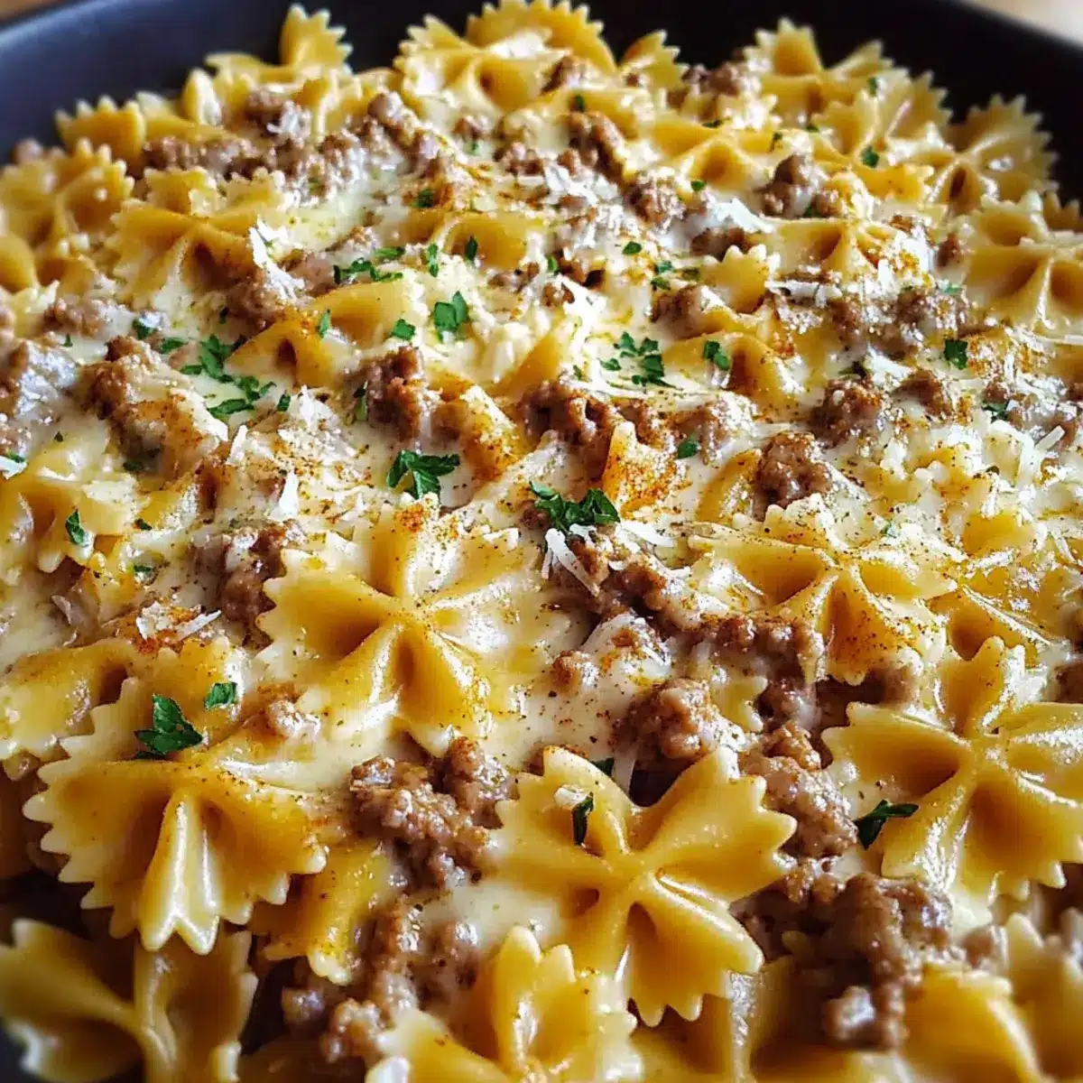 Savor Cajun Cream Cheese Alfredo Bowties with Spiced Beef