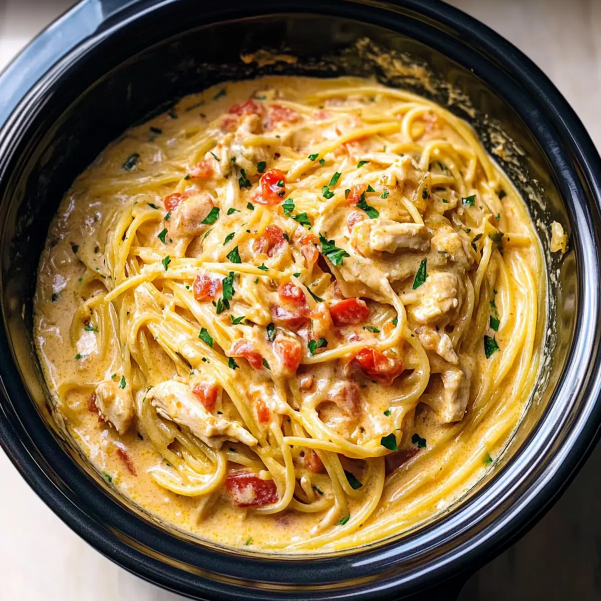 Irresistible Crock Pot Cheesy Chicken Spaghetti Dinner Magic