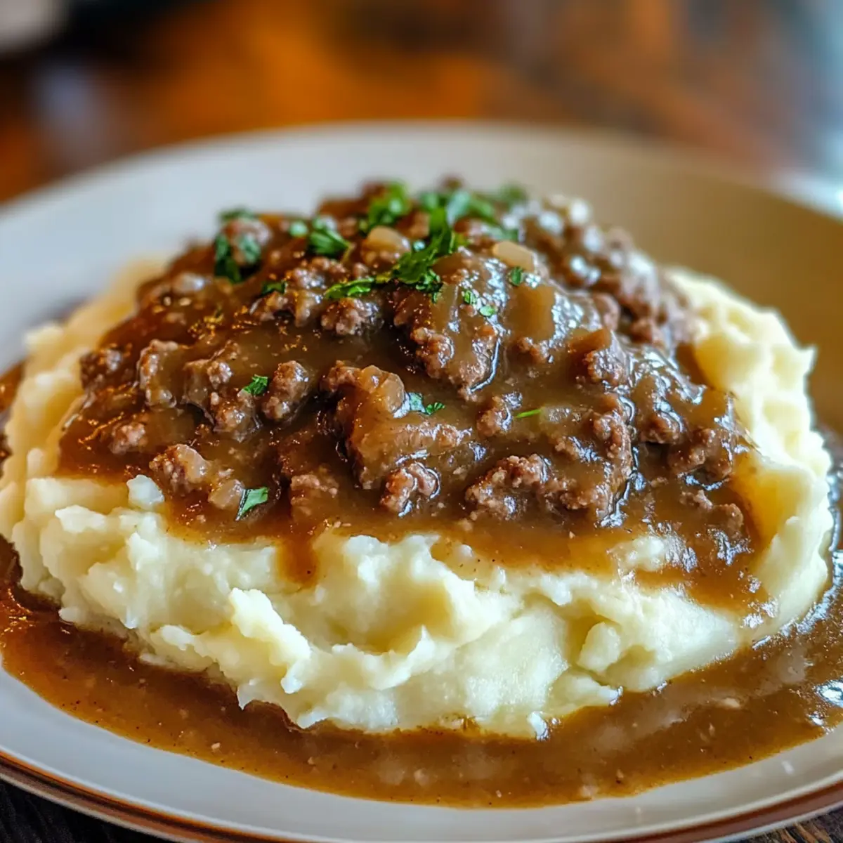 Savory Ground Beef and Gravy Over Mashed Potatoes Delight