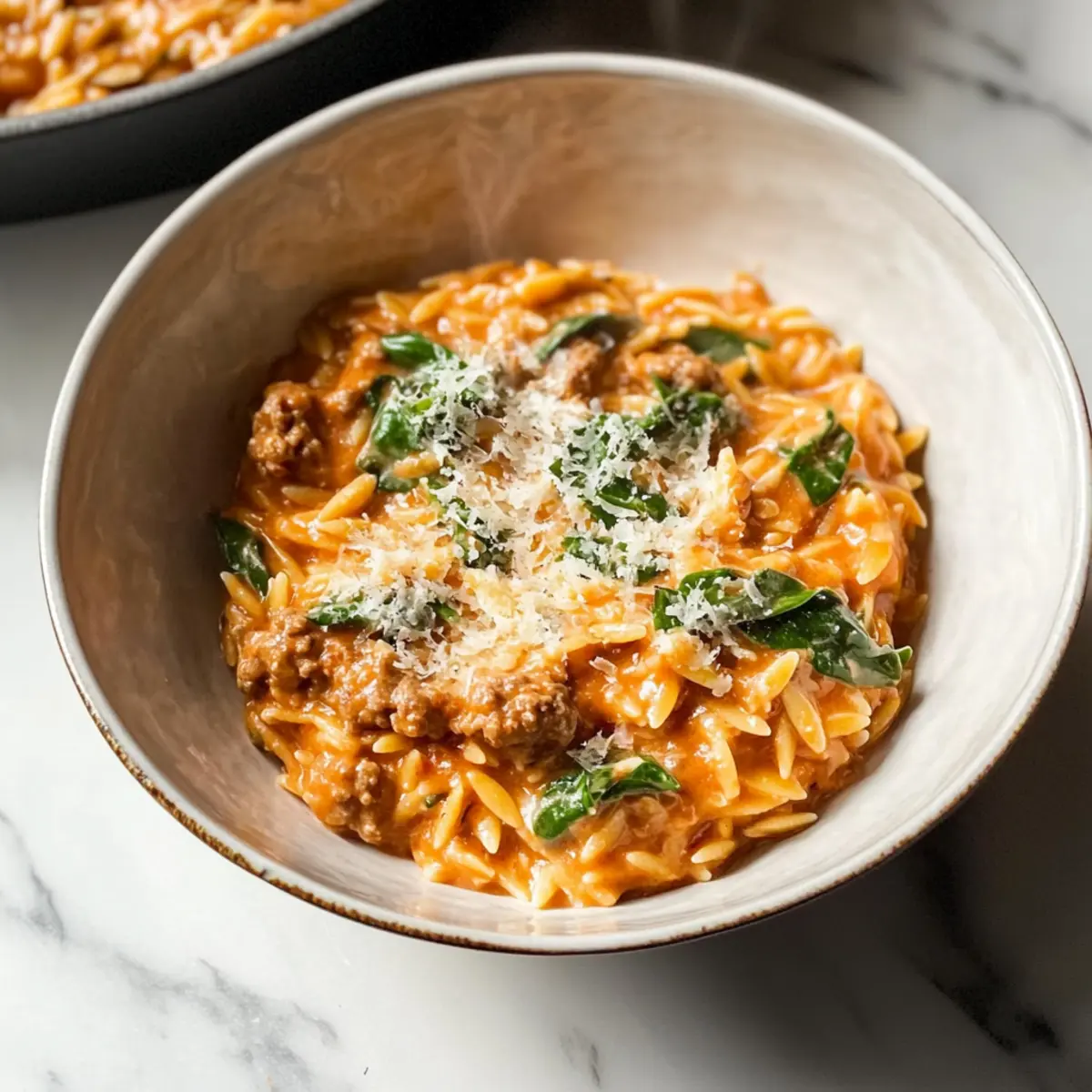 Creamy Ground Beef Orzo with Tomato Cream Sauce Bliss
