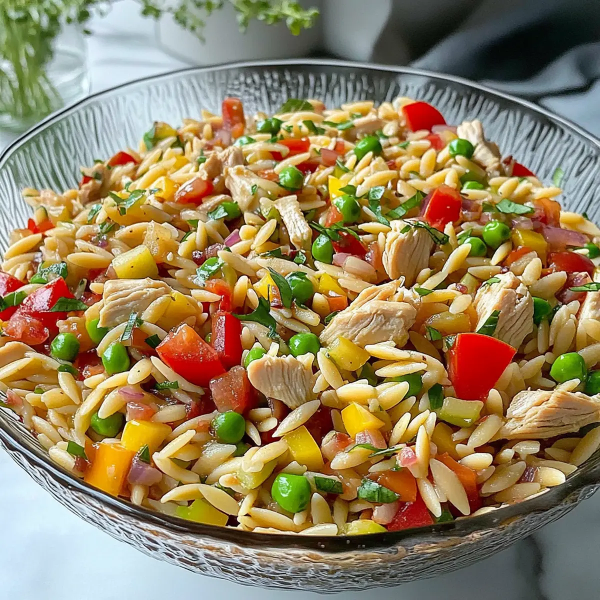 High Protein Pasta Salad With Orzo & Chicken for Summer Fun