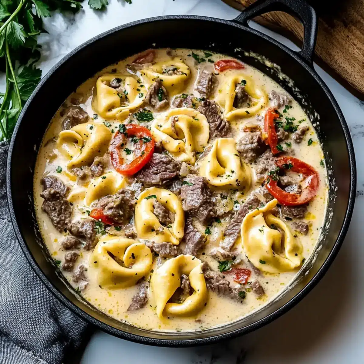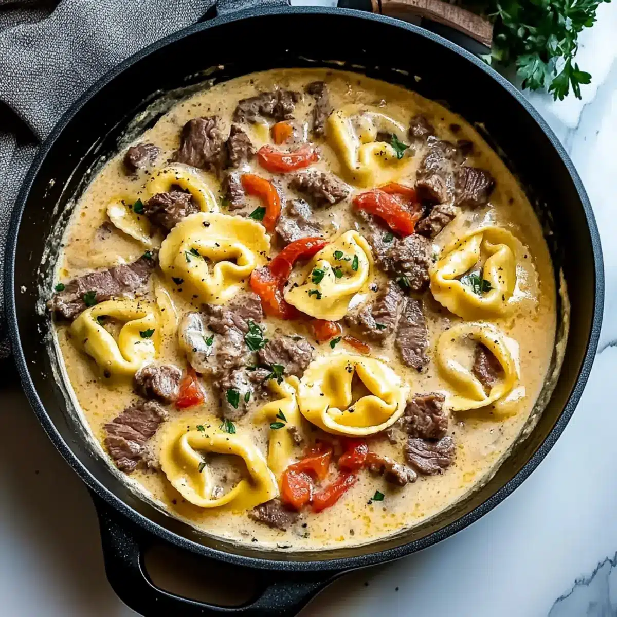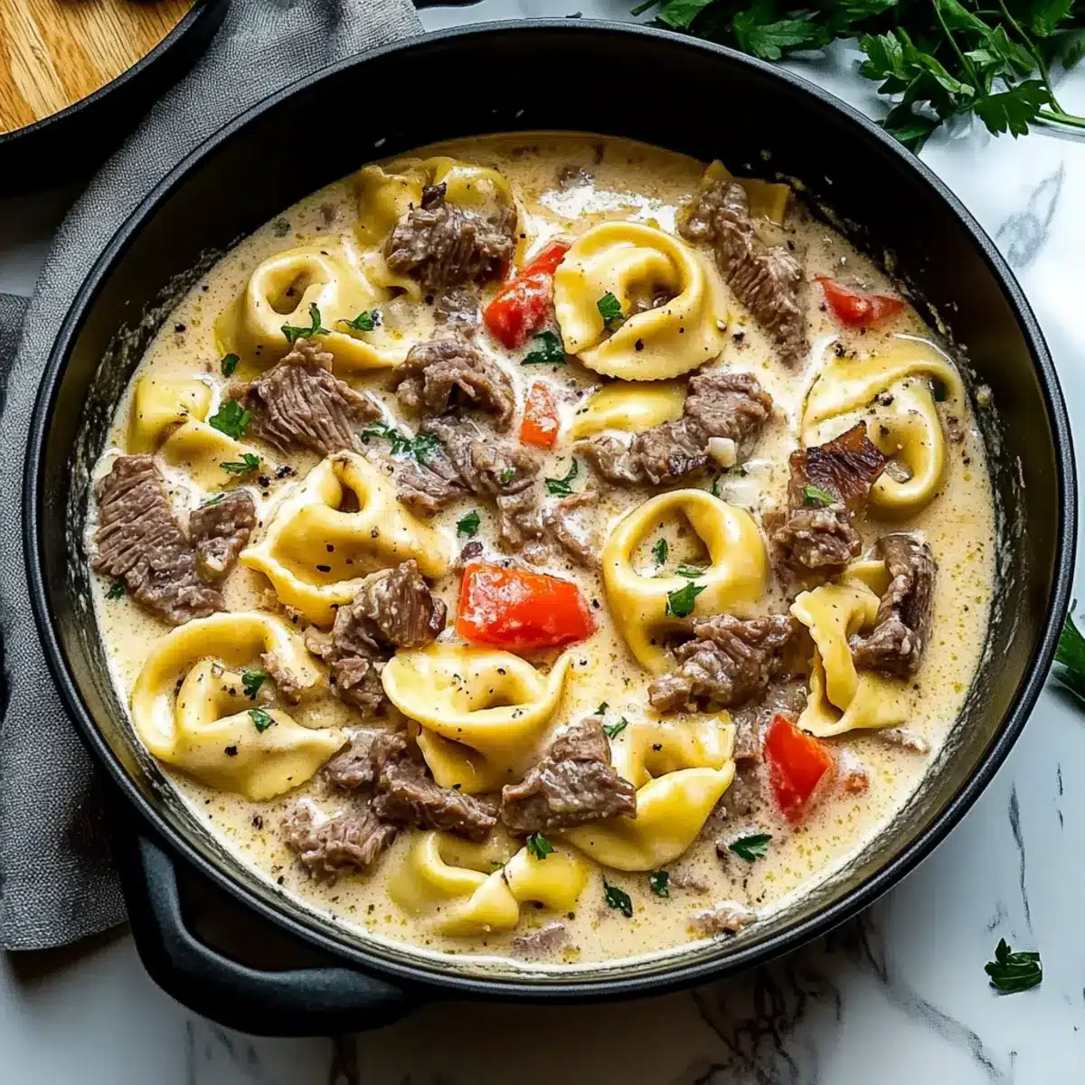 Enjoy crafting this Cheesesteak Tortellini in Creamy Provolone Sauce, where every bite warms your heart!