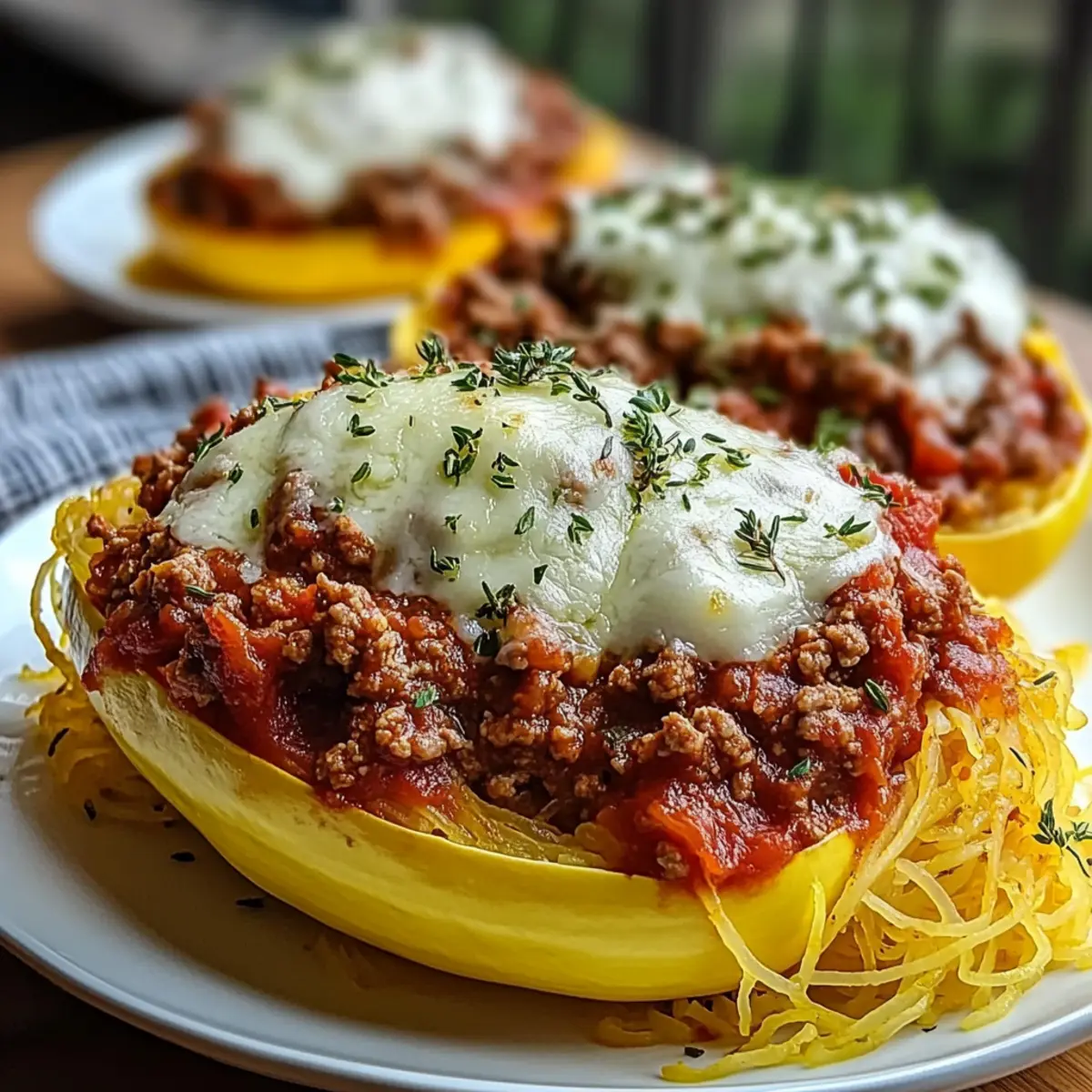 Cheesy Garlic and Herb Spaghetti Squash with Meat Sauce Delight
