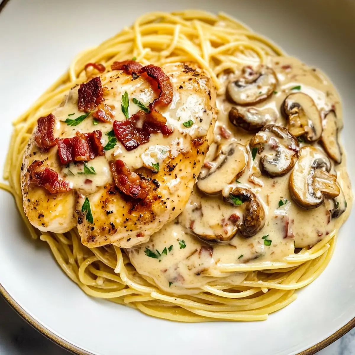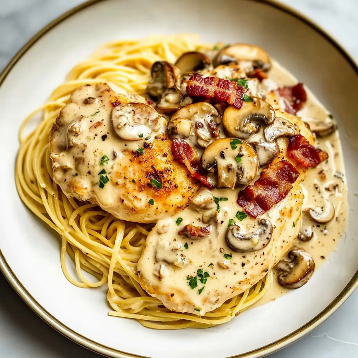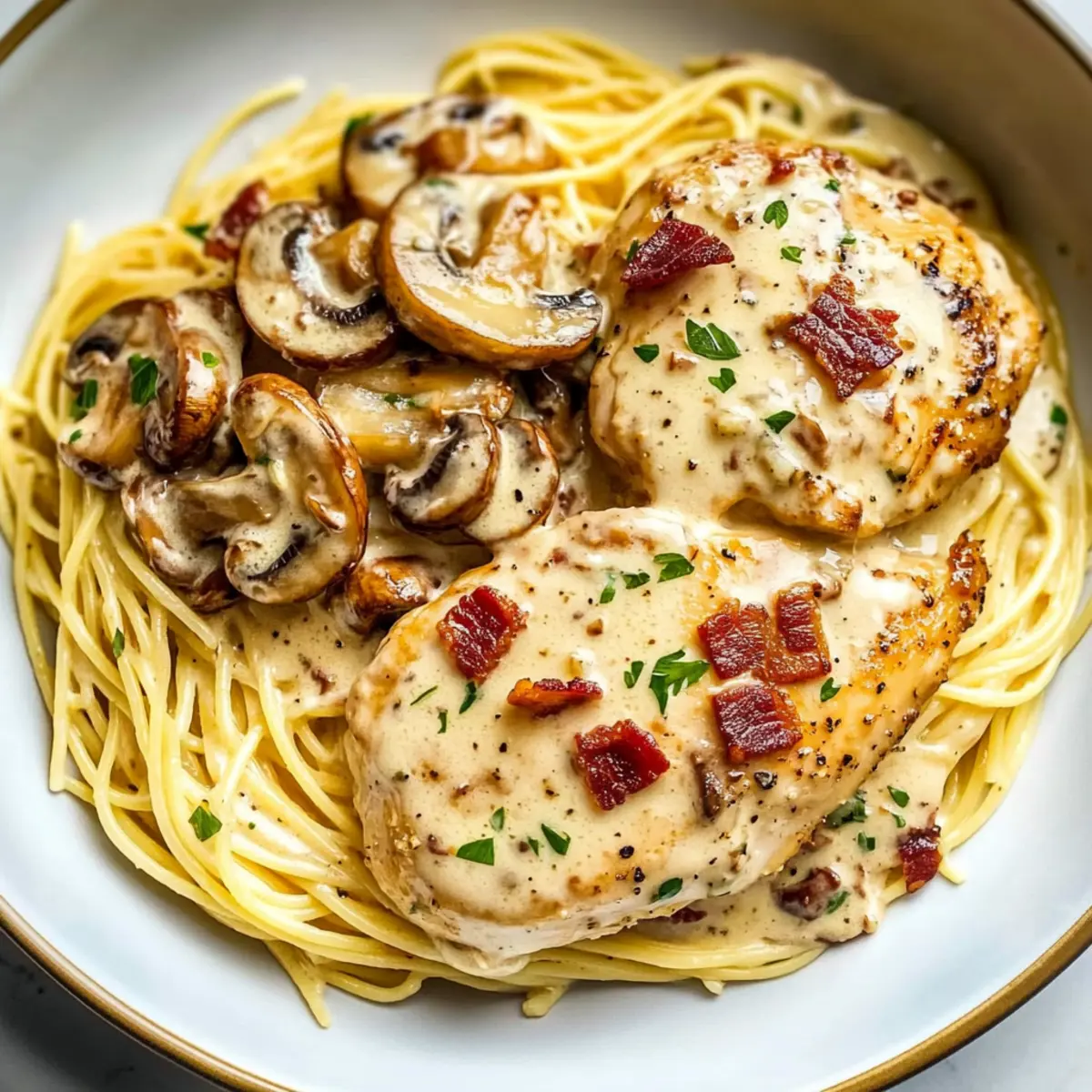 Indulge in Creamy Chicken Riesling with Bacon and Mushrooms