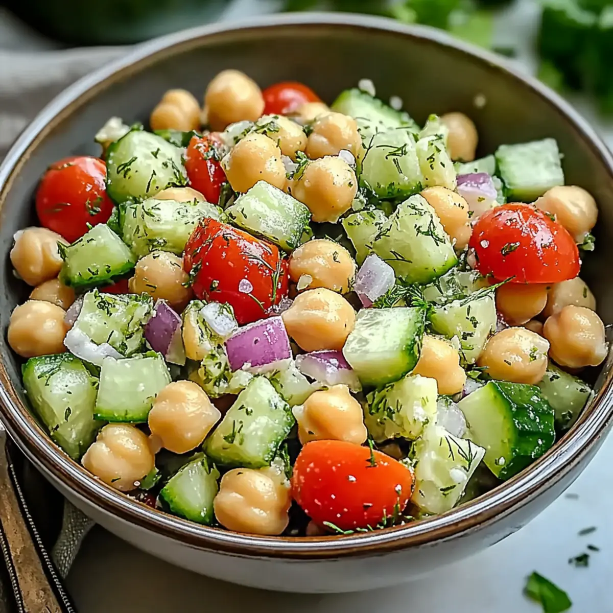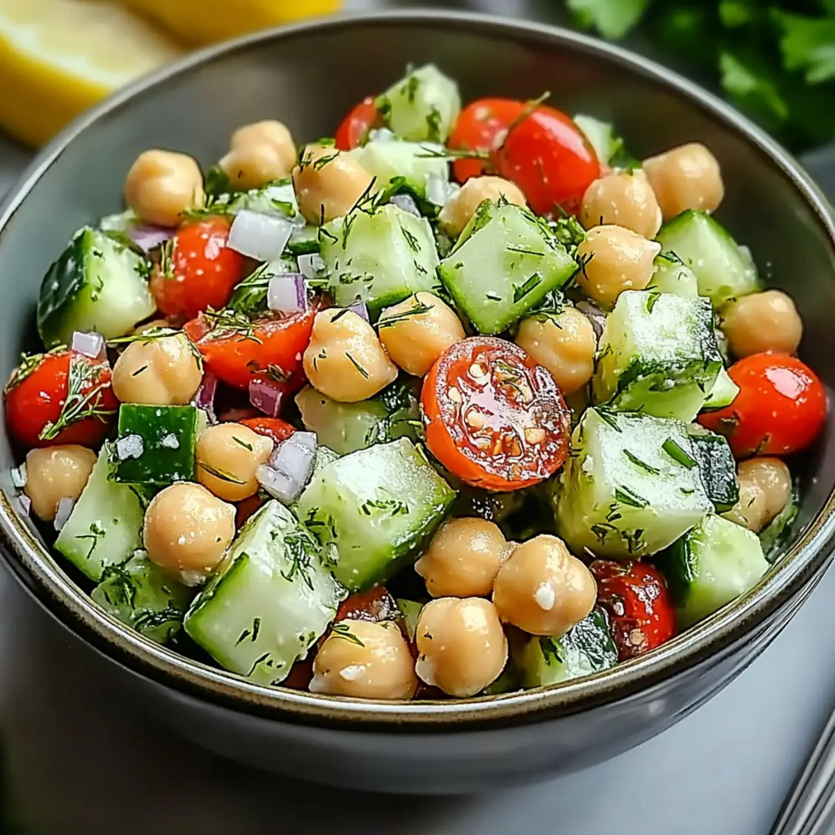Creamy Dressing Option: Add 1-2 tablespoons of plain yogurt or crumbled feta for a richer taste, enhancing your Chickpea Cucumber Salad beautifully.