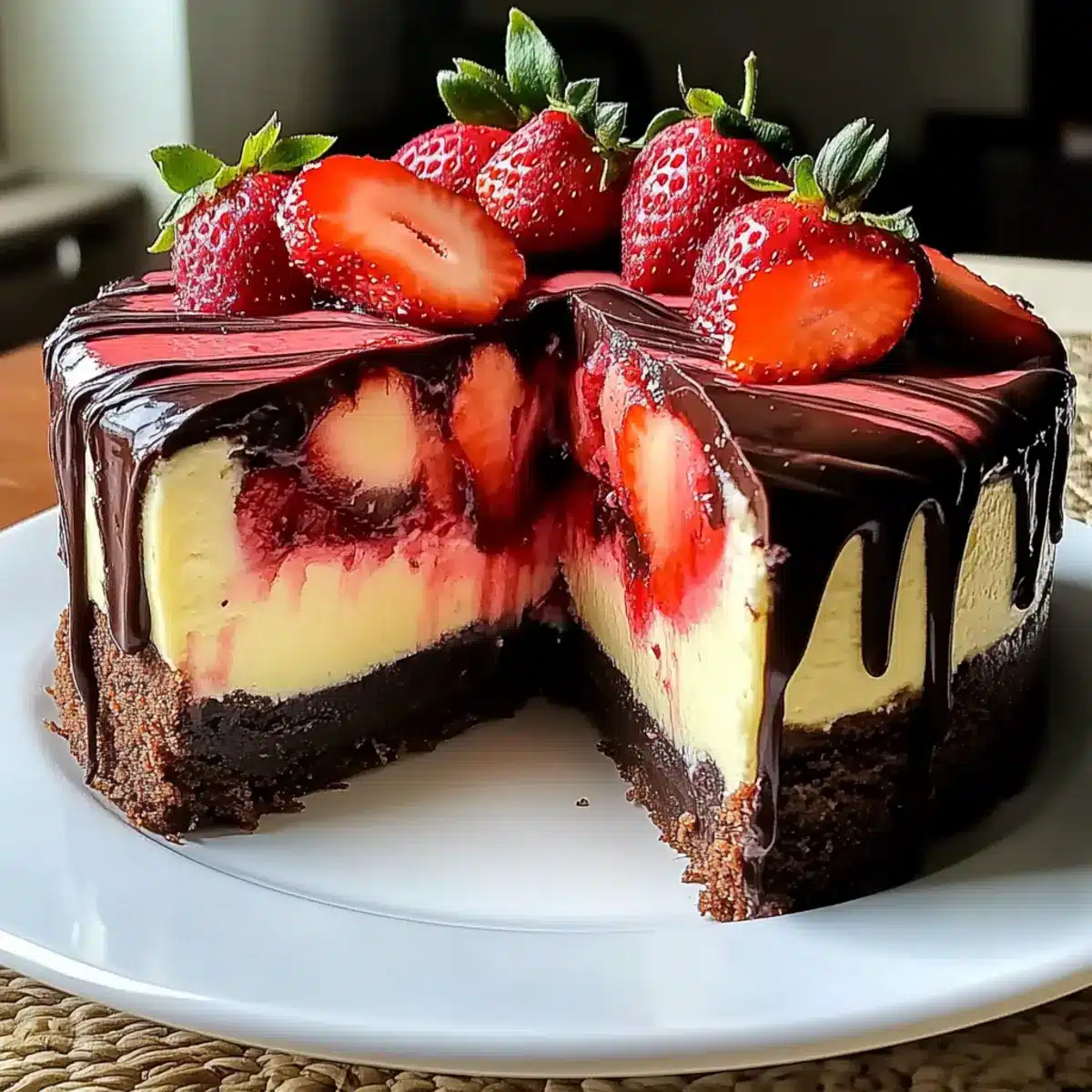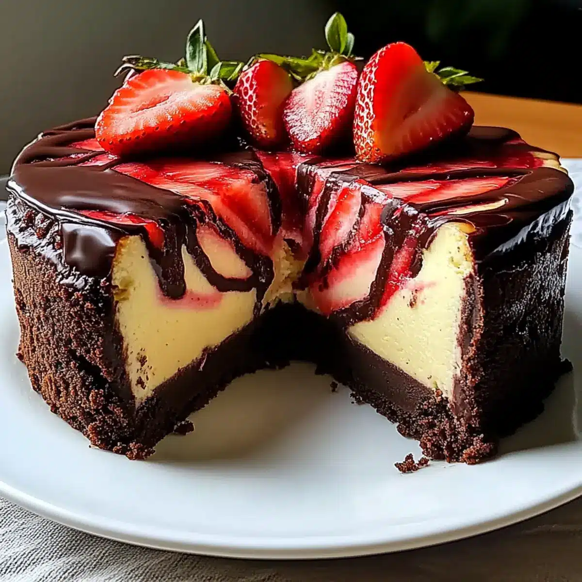 Chocolate Strawberry Swirl Cheesecake that Delights Every Bite
