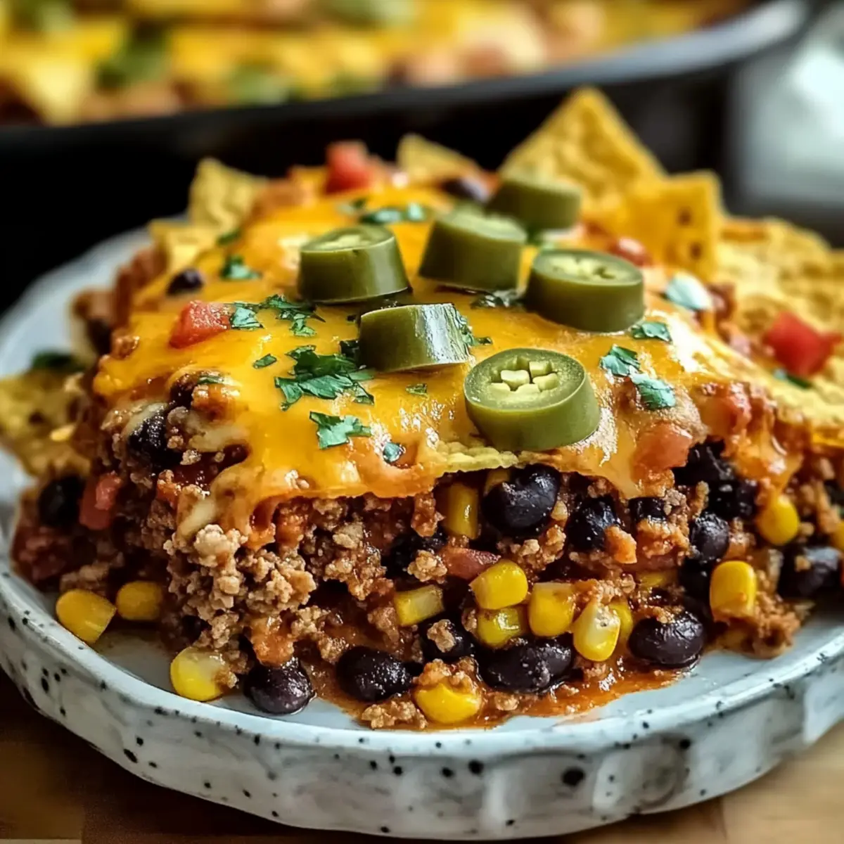 Flavorful Layers: Each bite offers a robust blend of zesty taco flavors, fresh ingredients like corn and black beans, and gooey melted cheese.