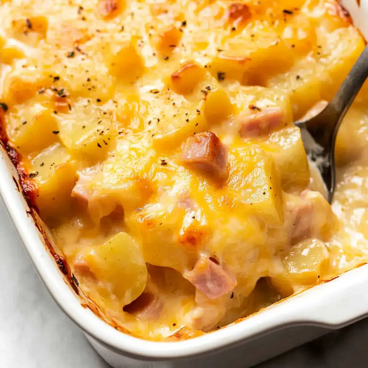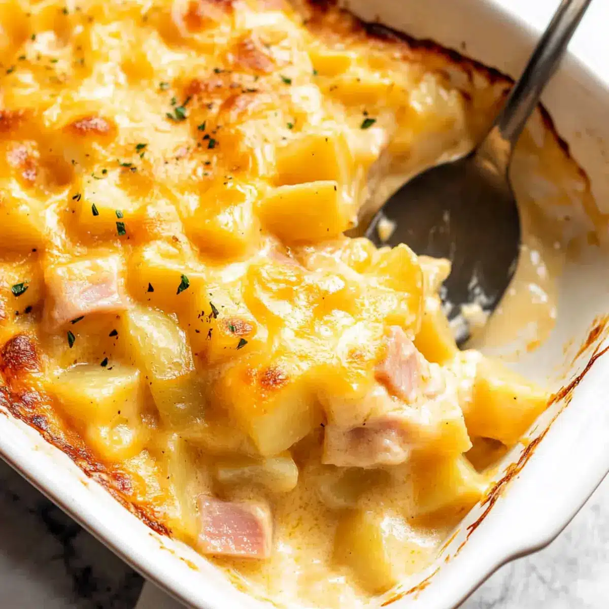 Comforting flavors: This Easy Ham and Potato Casserole bursts with the rich taste of melted cheese and savory ham, creating bliss in every mouthful.