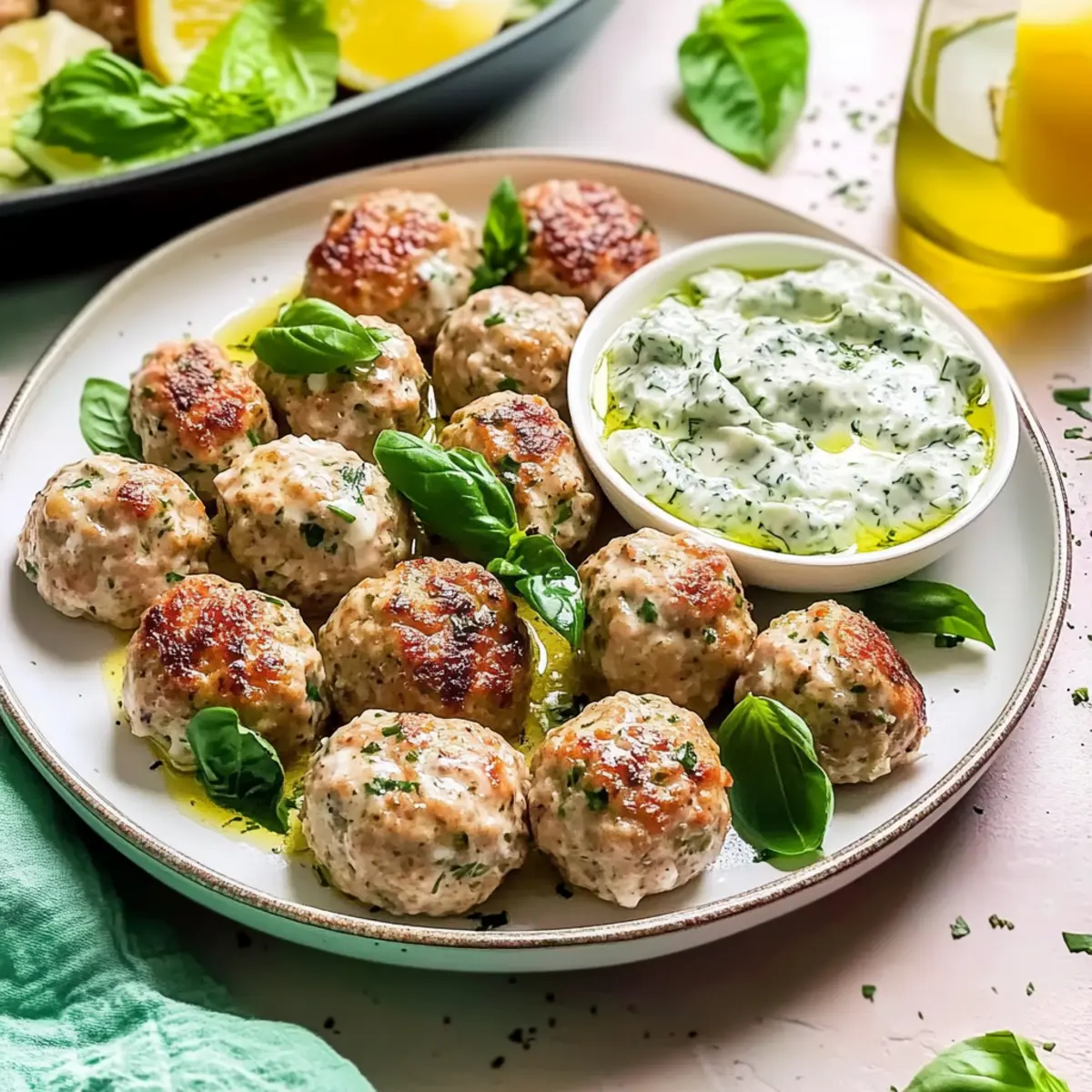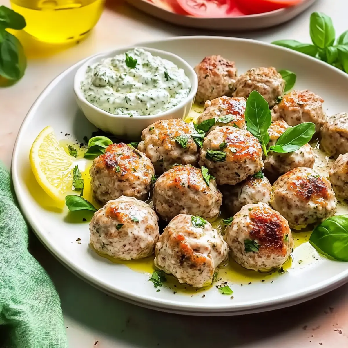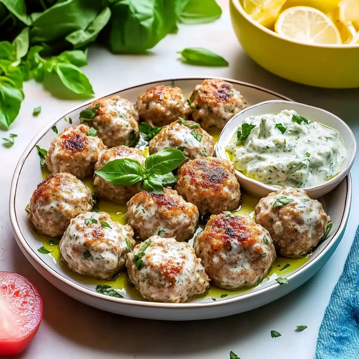 Zesty Greek Chicken Meatballs with Tzatziki Sauce Recipe