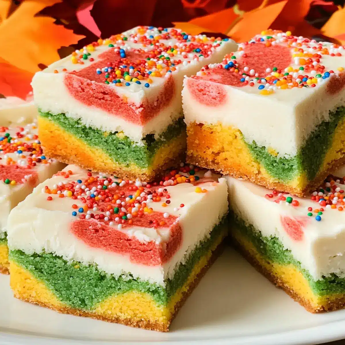 As I stirred the vibrant hues of red, orange, and gold into my cookie dough, the spirit of fall enveloped my kitchen. These Harvest Marble Sugar Cookie Bars bring the essence of the season right to your table, making them the perfect Thanksgiving dessert or a celebration of autumn during family gatherings. With their beautifully swirled appearance and soft, chewy texture, they’re not just a feast for the eyes but also a delightful treat that everyone will adore. Plus, with minimal prep time and a crowd-pleasing appeal, these bars take the stress out of holiday baking, leaving you with more moments to savor with your loved ones. What’s not to love about cake-like cookie bars topped with creamy buttercream frosting? Ready to indulge in this fall-inspired delight? Let’s get baking!