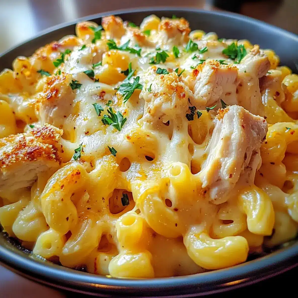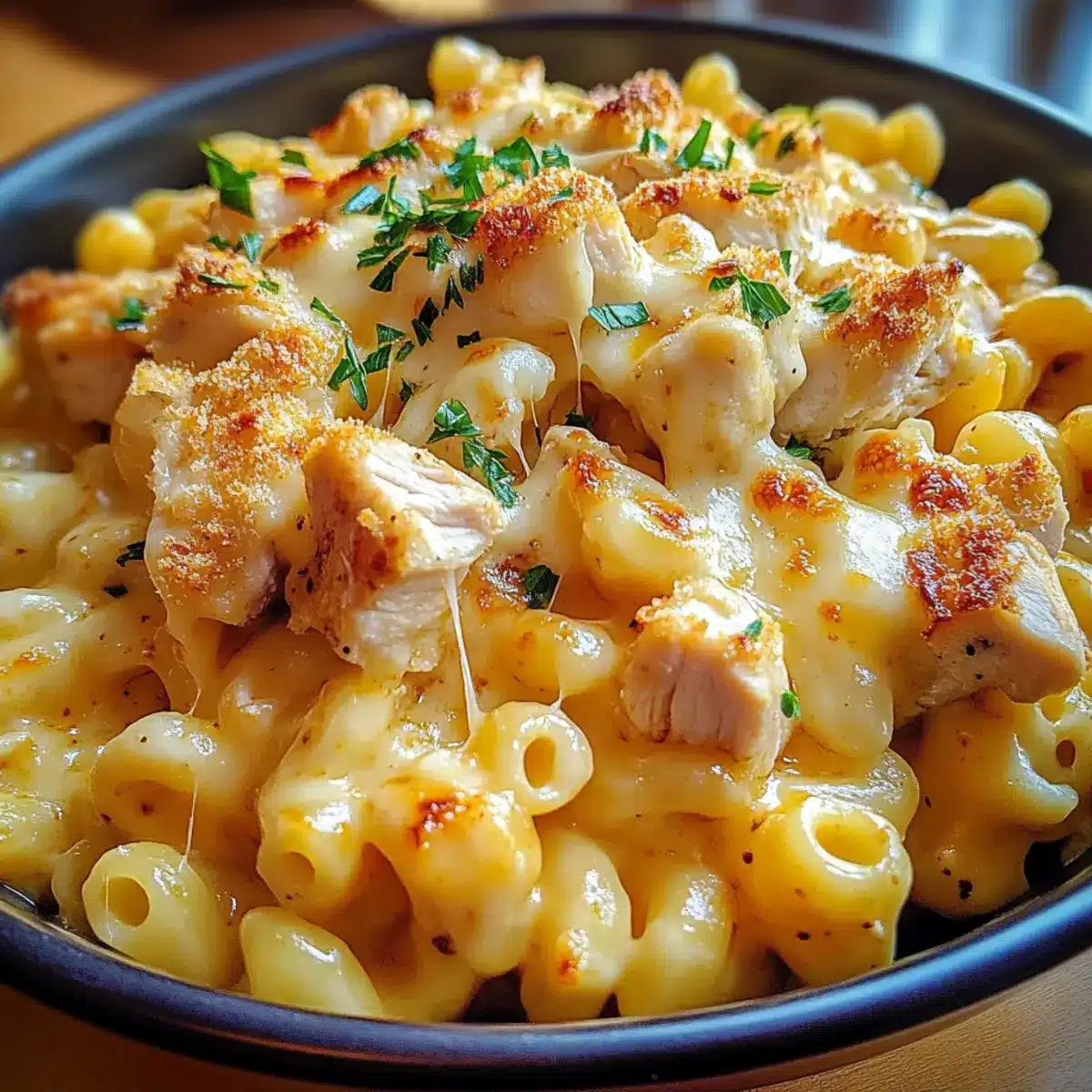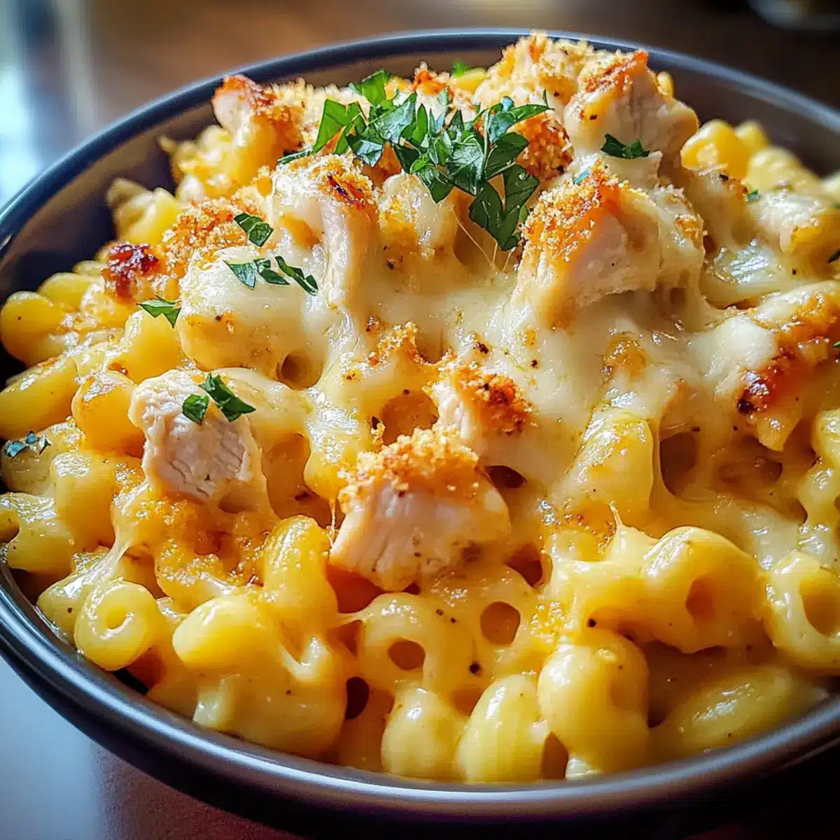 - Fold in the Chicken: Gently fold the chicken into the cheese-and-pasta mixture.