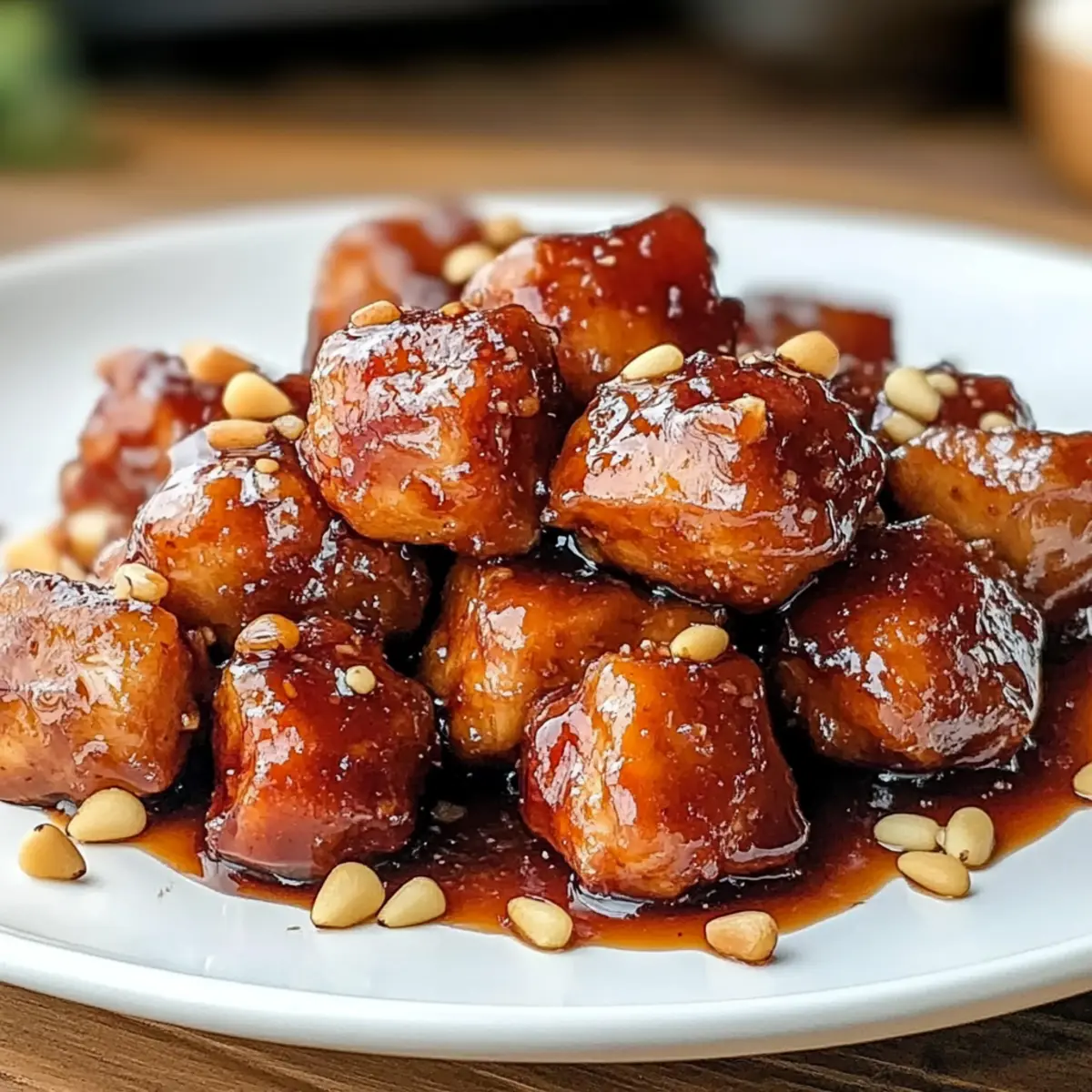 - Sprinkle toasted pine nuts over the chicken bites just before serving.