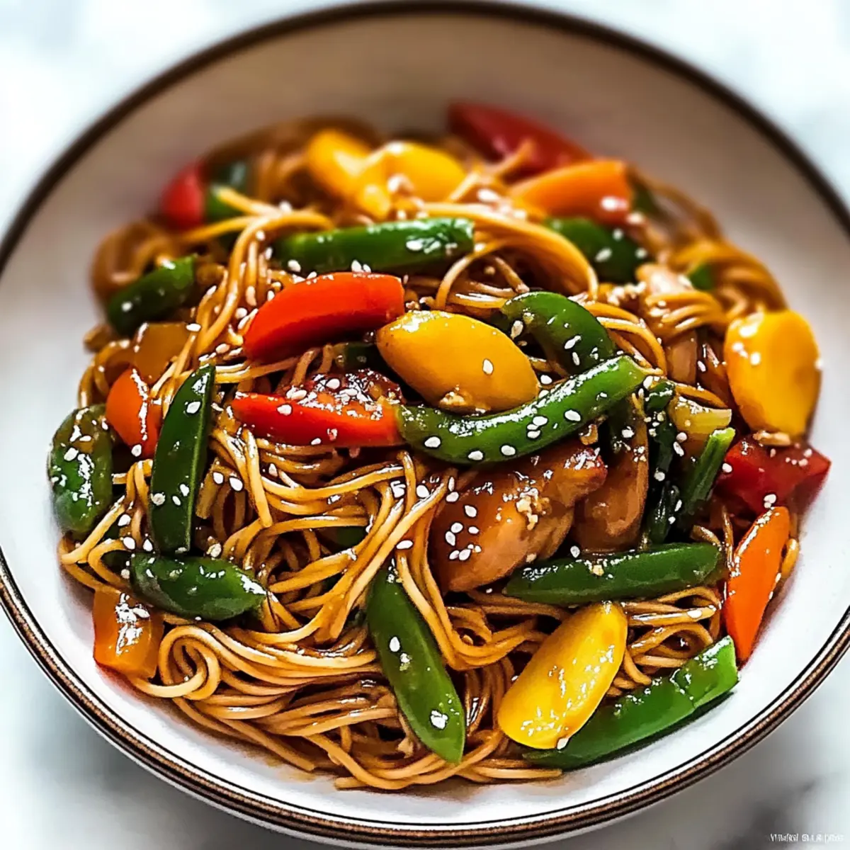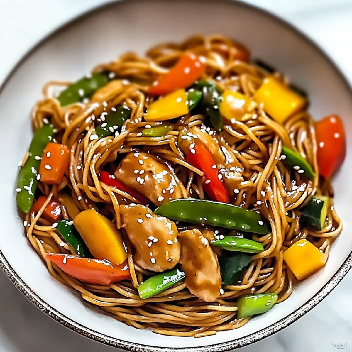 Perfect Sear: Ensure your chicken is well-seared for a crispy texture. This creates a beautiful contrast against the tender vegetables and noodles.