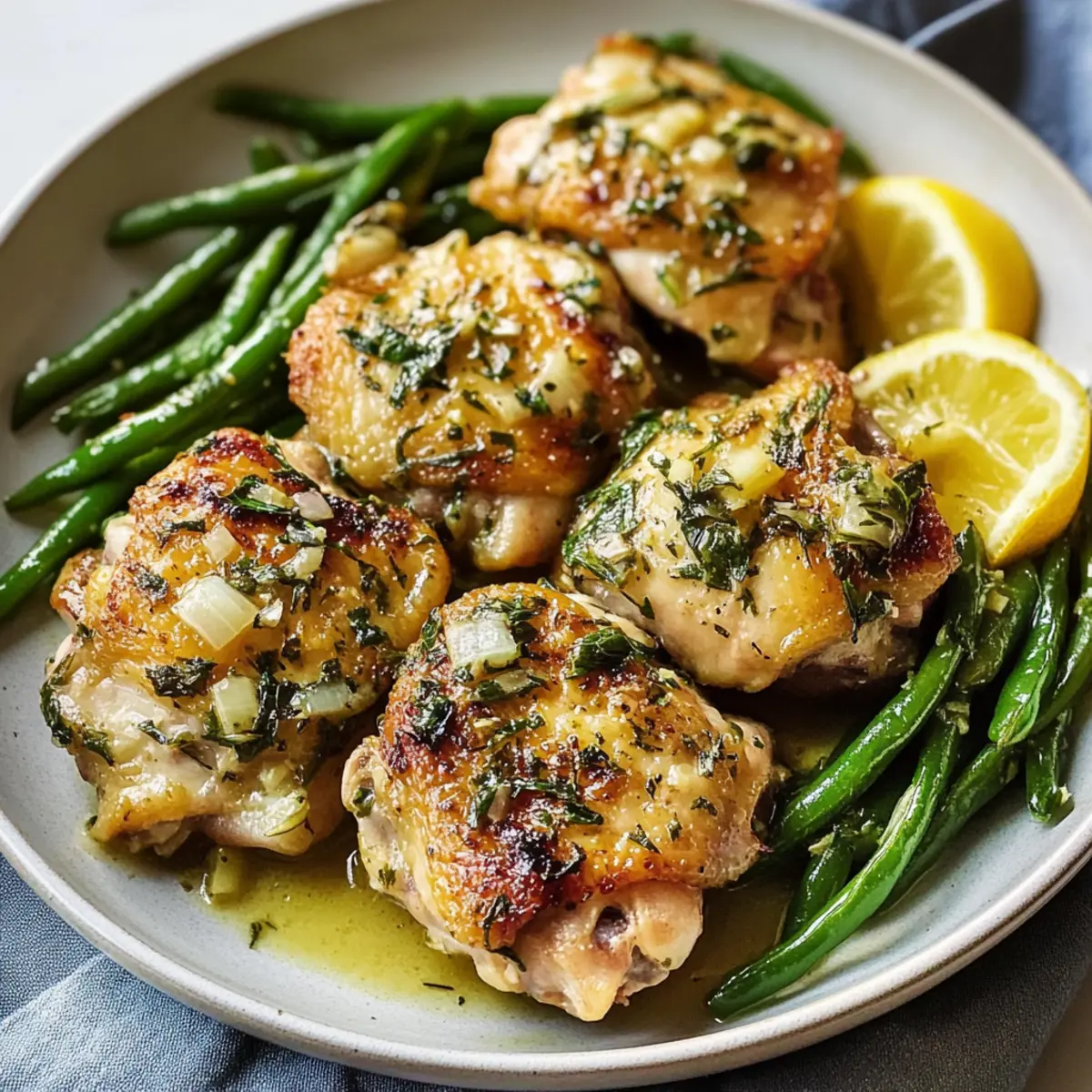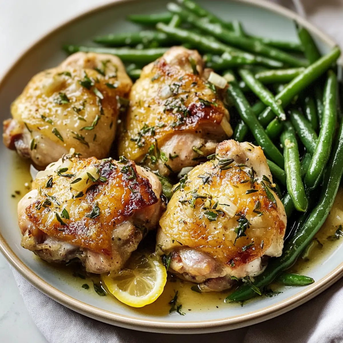 Juicy Lemon Garlic Butter Thighs & Green Beans Skillet Bliss