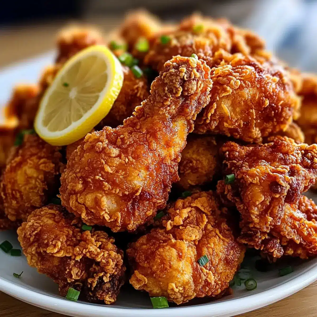 Carefully lower the chicken pieces into the hot oil in small batches, ensuring not to overcrowd the pot. Fry for about 3-4 minutes, flipping them halfway through until they turn a gorgeous golden brown. Keep an eye on the color and texture; the chicken should feel crisp to the touch.
