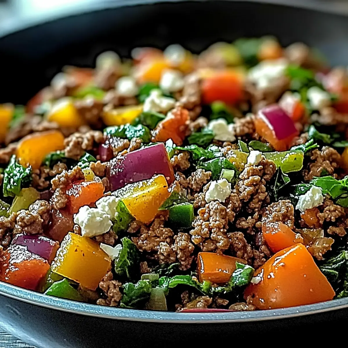 These Mediterranean Ground Beef Stir Fry preparations are perfect for busy home cooks looking to save time during hectic weeknights! You can chop your onions and bell peppers, mince garlic, and wash your leafy greens up to 24 hours in advance. Store each component in airtight containers in the refrigerator to keep them fresh and prevent browning. Additionally, you can brown the ground beef and season it, allowing it to cool before refrigerating for up to 3 days. When you’re ready to serve, simply reheat the beef, add the vegetables, and cook until everything is heated through. This makes for a quick, nourishing meal that tastes just as delicious as if you made it from scratch that day!