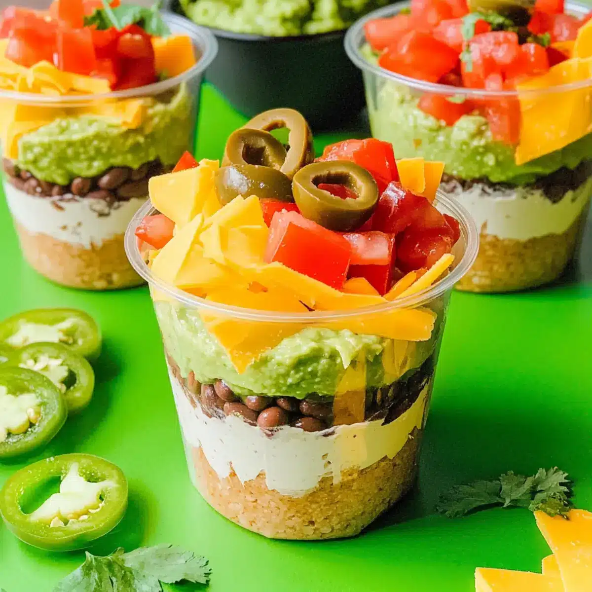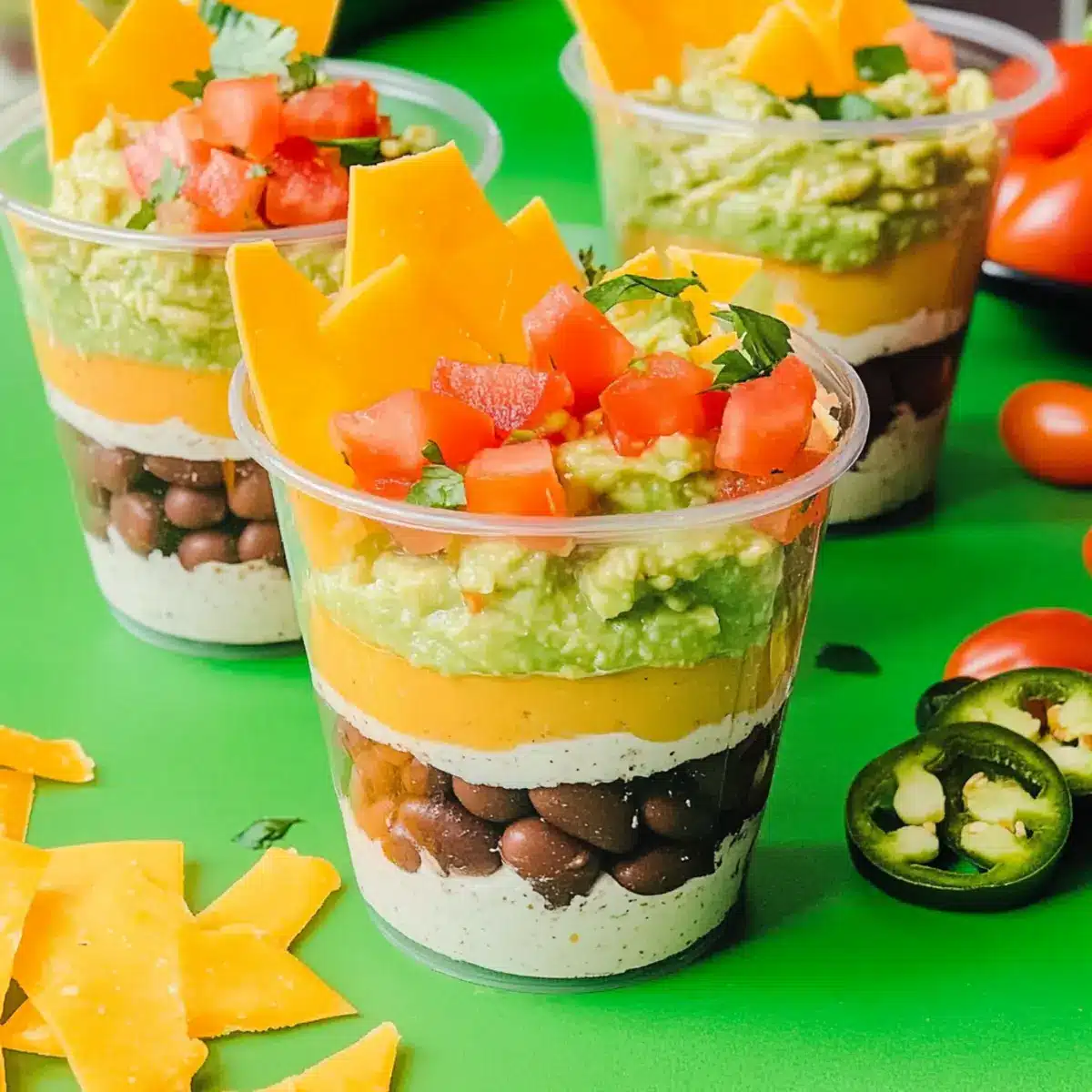Mexican 7 Layer Dip Cups for Fun Tailgating Treats