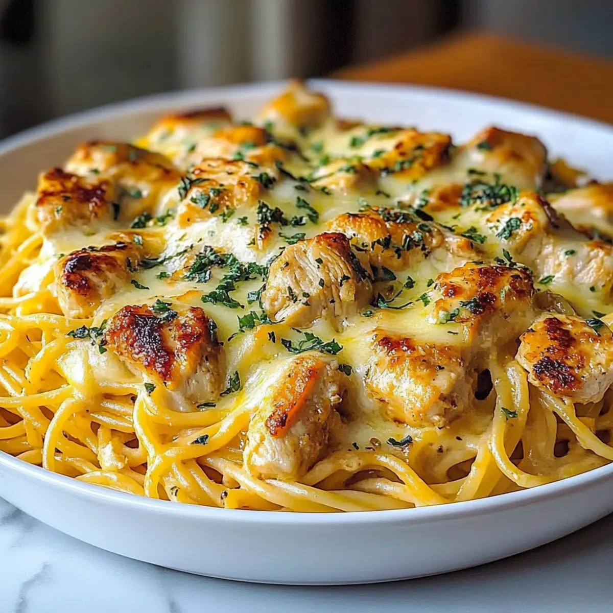 - Return cooked spaghetti and sliced chicken to the skillet, gently tossing to coat everything in the sauce.