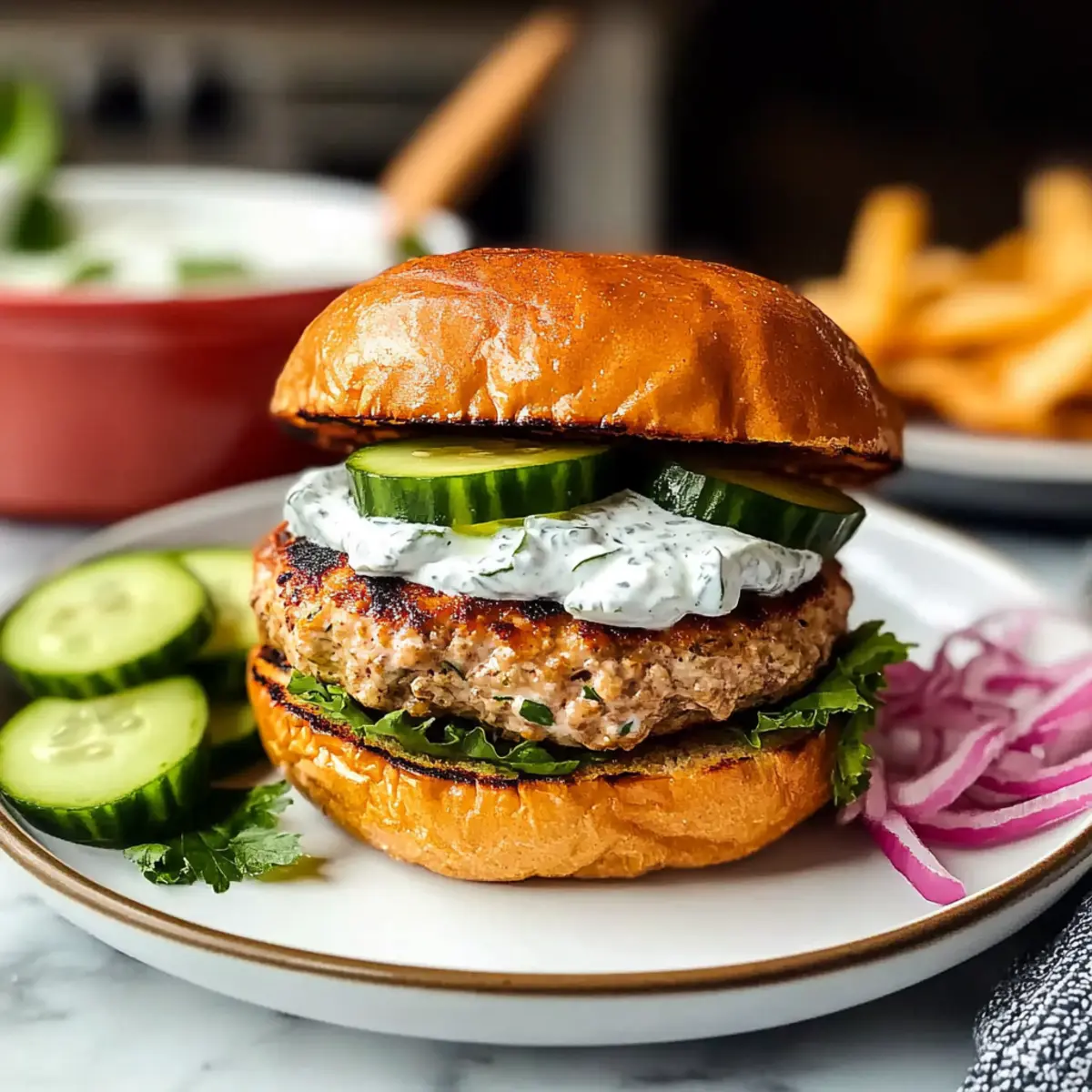 These mouthwatering Mediterranean turkey burgers are a fantastic choice for meal prep! You can prepare the turkey burger patties up to 24 hours in advance by mixing the ingredients and shaping them, then cover and refrigerate them until you’re ready to cook. Additionally, the creamy Greek yogurt sauce can be made ahead and stored in the fridge for up to 3 days; just keep it in an airtight container to maintain its freshness. When you’re ready to serve, simply heat a skillet and cook the patties for 5-7 minutes per side until golden brown. You’ll have a delicious meal that feels effortless, perfect for busy weeknights!