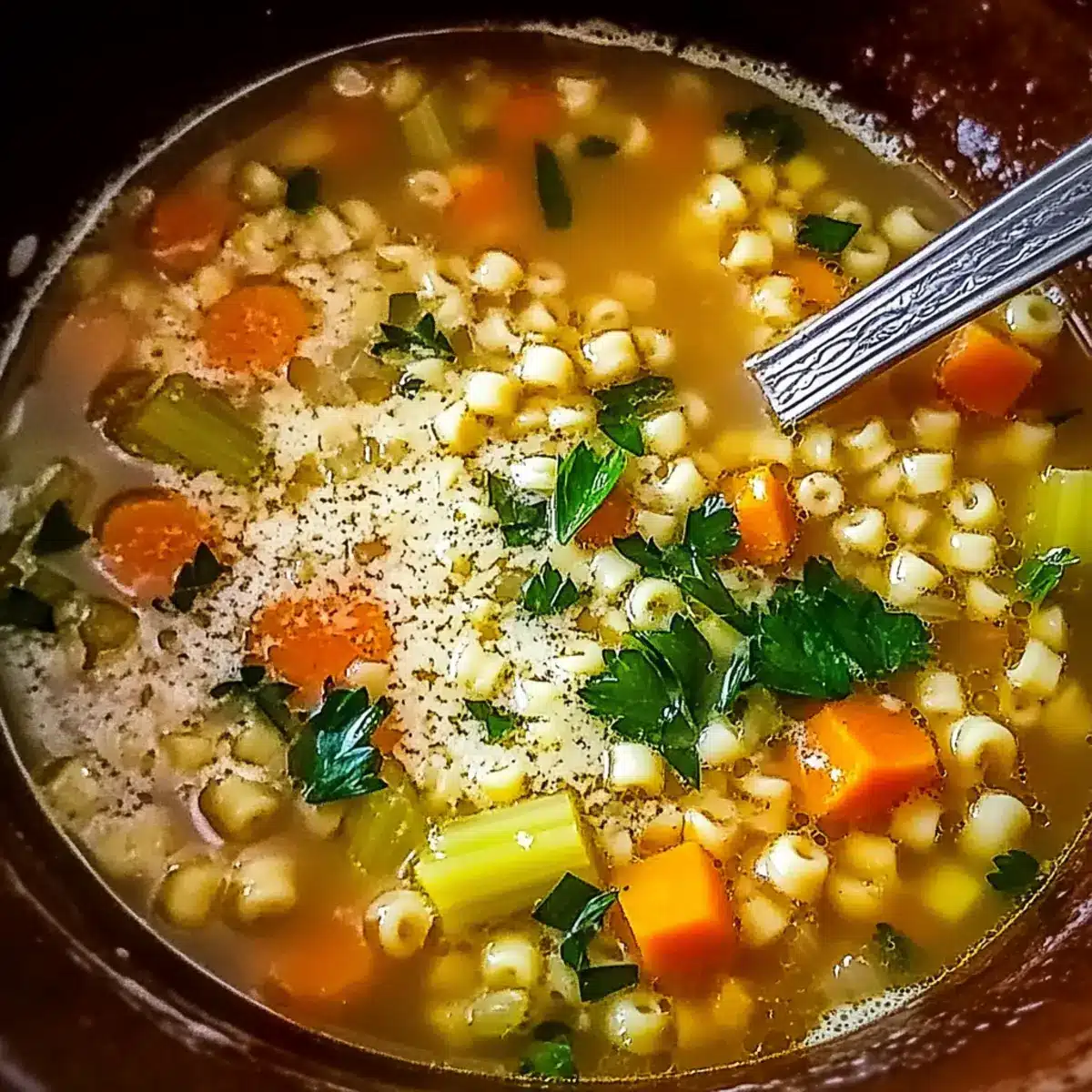 Ladle the soup into bowls and garnish with freshly chopped parsley and a sprinkle of Parmesan cheese if desired. The vibrant green color will pop against the warm broth, making it visually inviting. Serve your comforting Pastina Soup hot, perfect for warming up on a chilly evening or enjoying with loved ones.