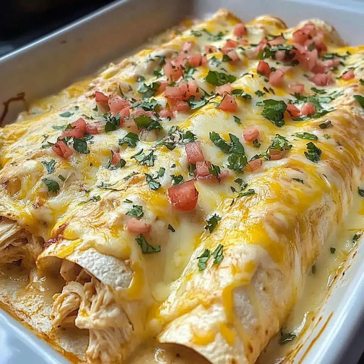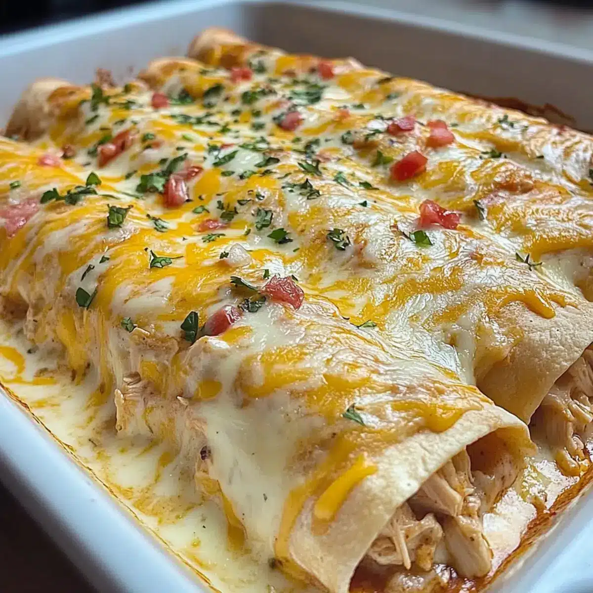 Melt-in-Your-Mouth Queso Chicken Enchiladas Bake