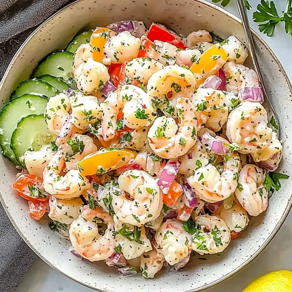 Preparation Tip: To enjoy the salad long-term, consider preparing the shrimp and dressing separately from the vegetables, combining them just before serving for optimal freshness in taste and texture.
