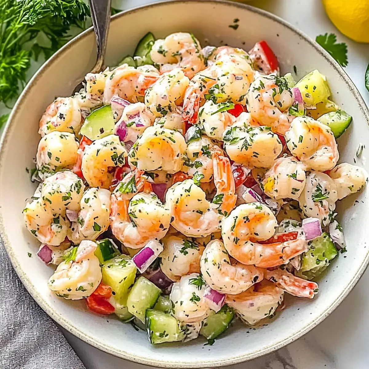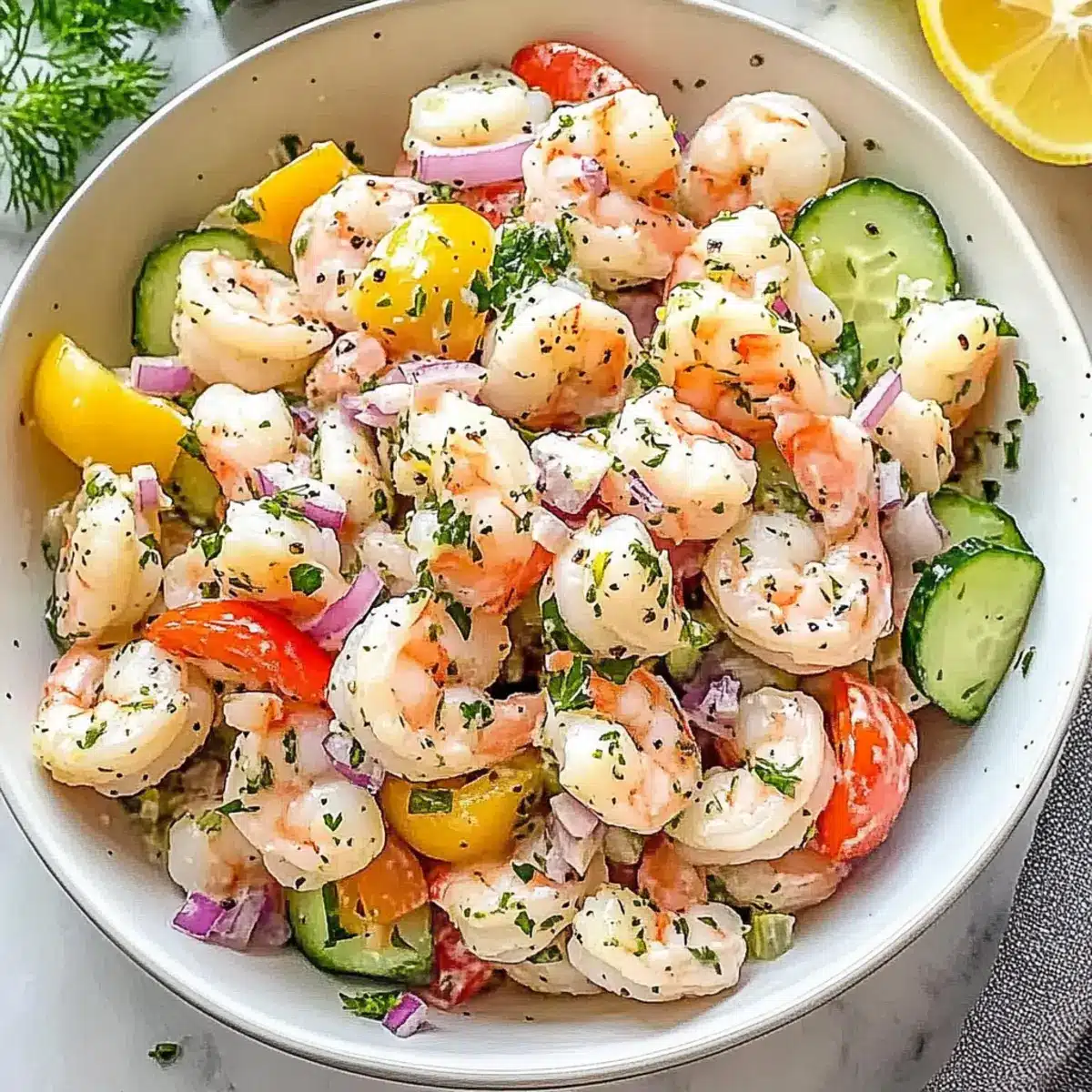 Preparing this Refreshing Seafood Salad is a breeze, making it a fantastic choice for meal prep! You can chop all the vegetables (cucumbers, bell peppers, and red onions) up to 24 hours in advance and store them in an airtight container in the refrigerator to keep them fresh and crisp. Additionally, the shrimp can be cooked and cooled up to 3 days ahead; simply refrigerate it in a sealed container. When you’re ready to serve, just combine the chilled shrimp and veggies with the dressing, sprinkle fresh herbs, and season to taste. This way, you’ll savor the delightful flavors with minimal effort, providing you with a refreshing dish that’s just as delicious as if made fresh!