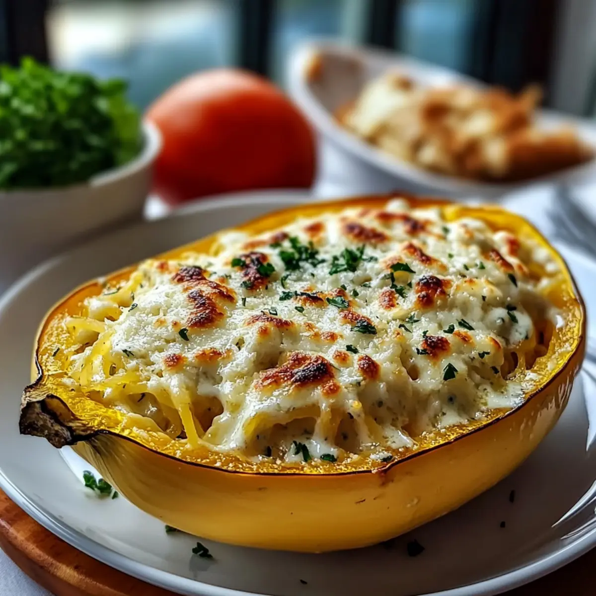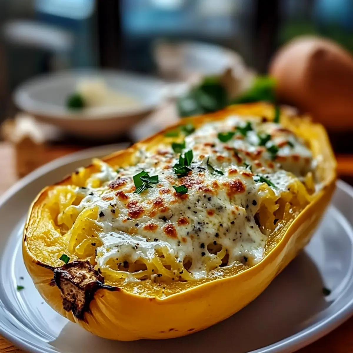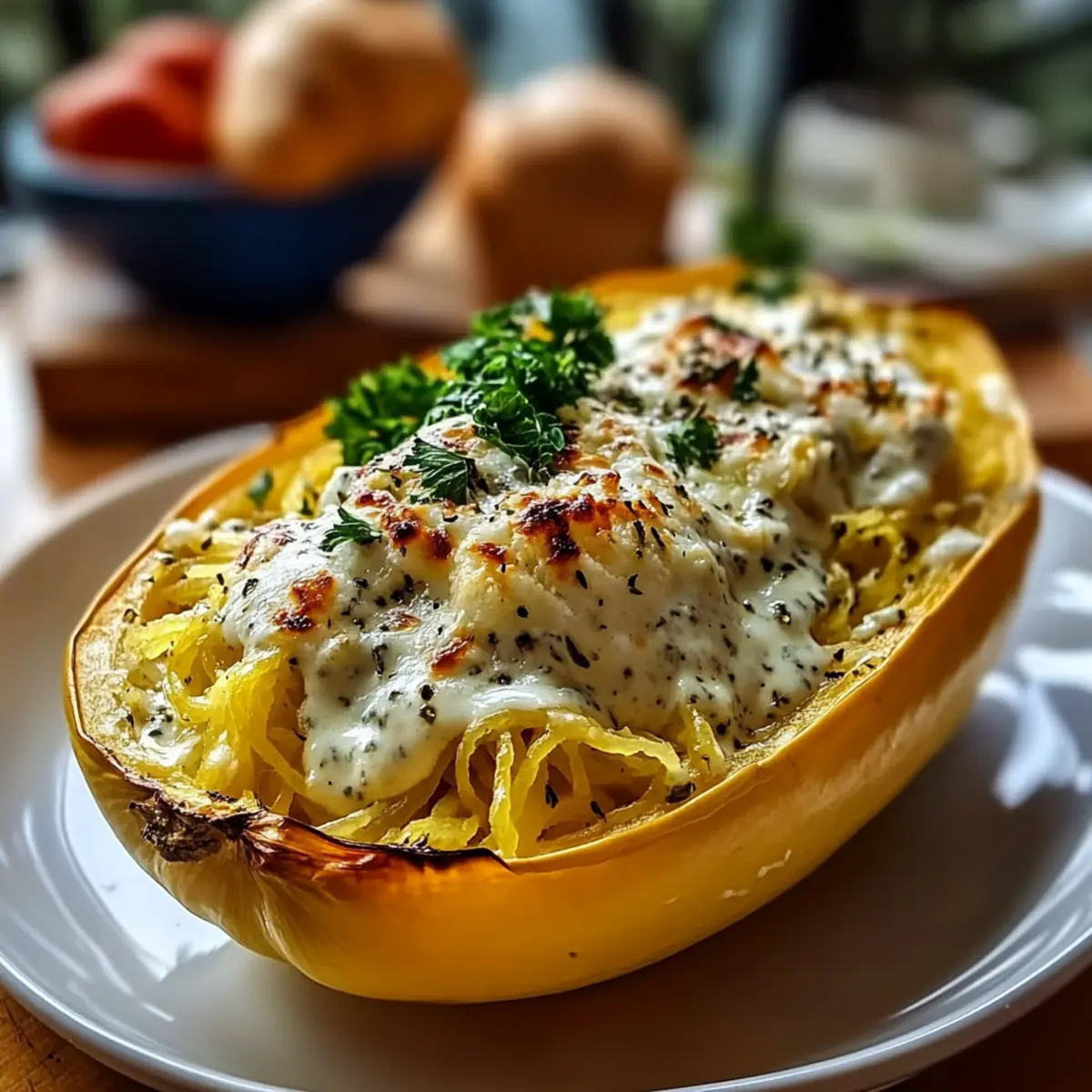 Roasted Spaghetti Squash With Alfredo Sauce and Cheese Bliss