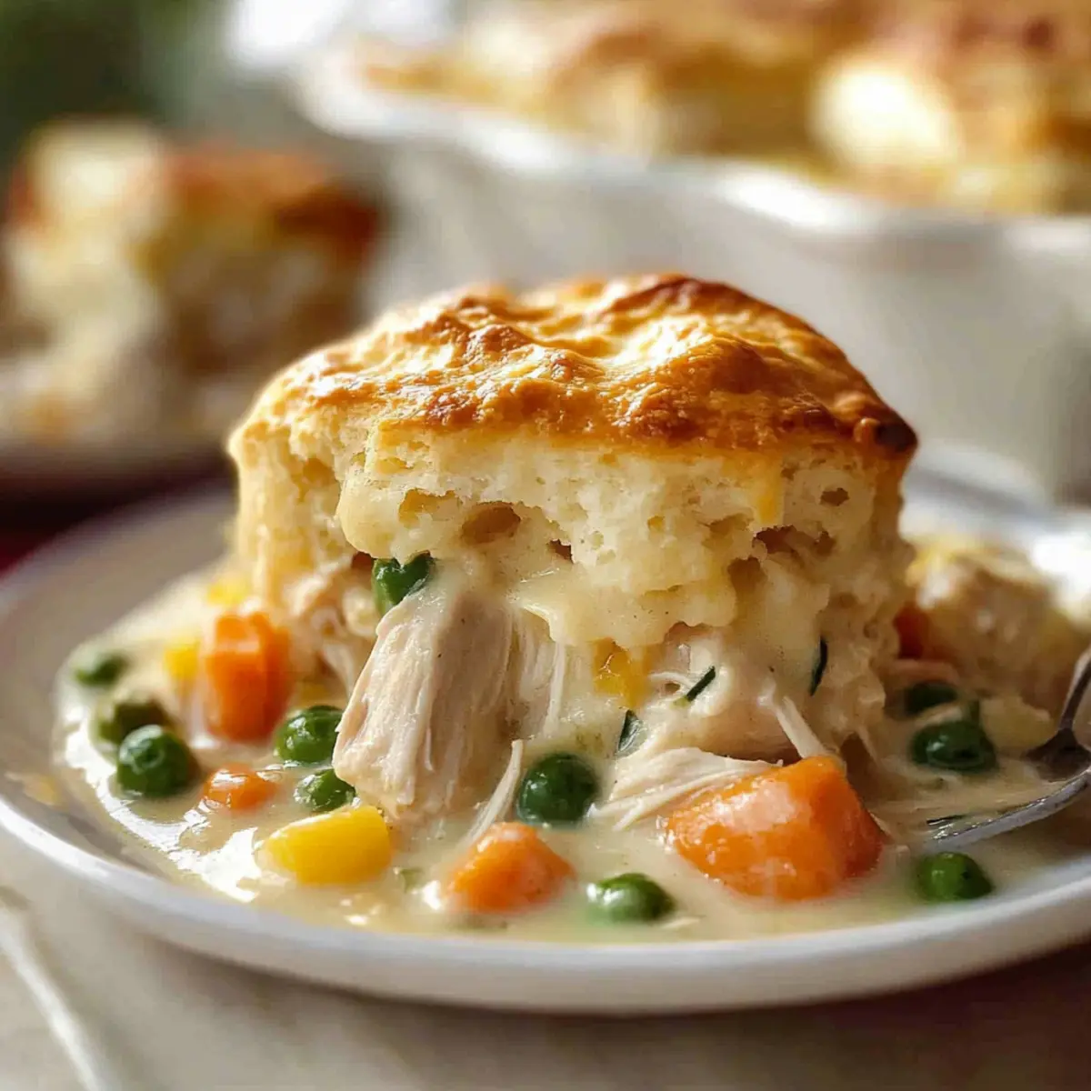 Reheating: To reheat, place in the oven covered with foil at 350°F until heated through, about 25-30 minutes. This helps maintain the biscuit texture while warming the creamy filling.