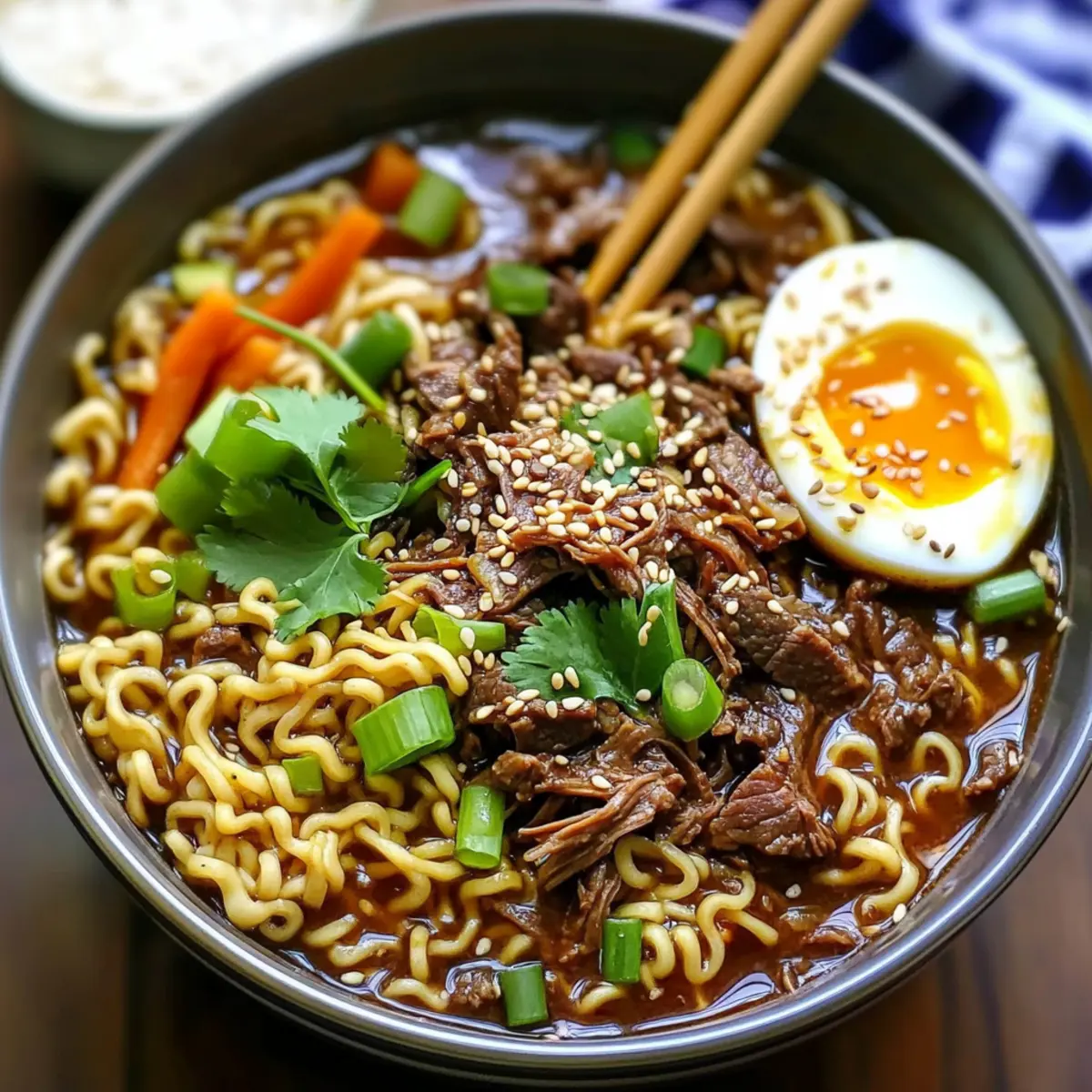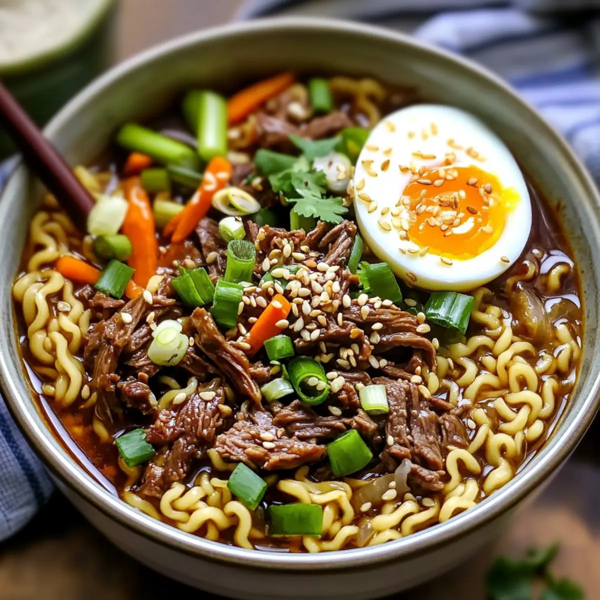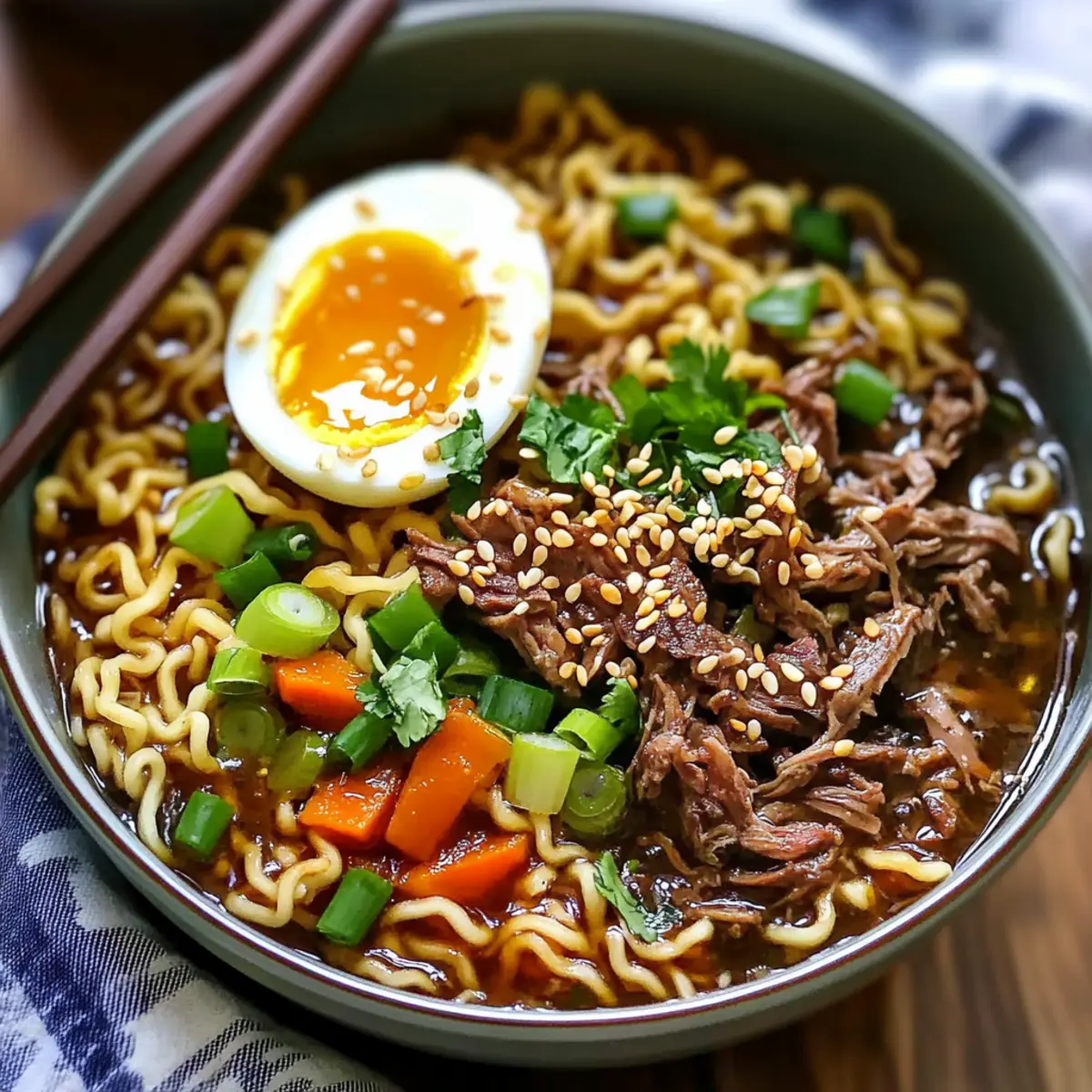 As the sun dips below the horizon, there’s nothing quite like the soothing aroma of a hearty meal wafting through the house. That’s where my Slow Cooker Beef Ramen Noodles come in, a culinary embrace on a busy night. This recipe not only harnesses the incredible flavors of slow-cooked beef in a rich broth, but it also lets you tailor each bowl to your liking with fresh vegetables and spices. It’s an easy, comforting dish ideal for meal prepping or sharing with loved ones, perfect for those who crave homemade goodness without the hassle. Have you ever dreamed of slurping noodles that remind you of a cozy ramen bar? Let’s dive into crafting this delightful dish together!