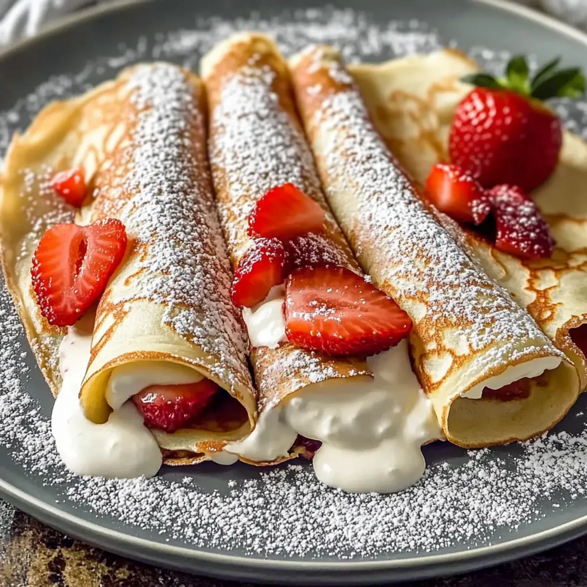 Reheating: To reheat, simply warm the crepes in a non-stick skillet over low heat for about 30 seconds on each side, or pop them in the microwave for 15-20 seconds. Serve with fresh strawberries and a dollop of the creamy filling for an irresistible treat!