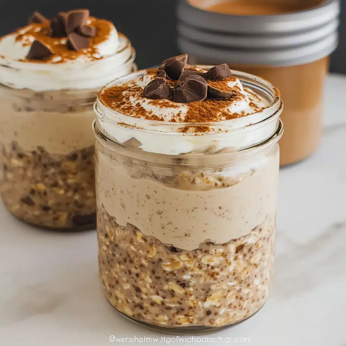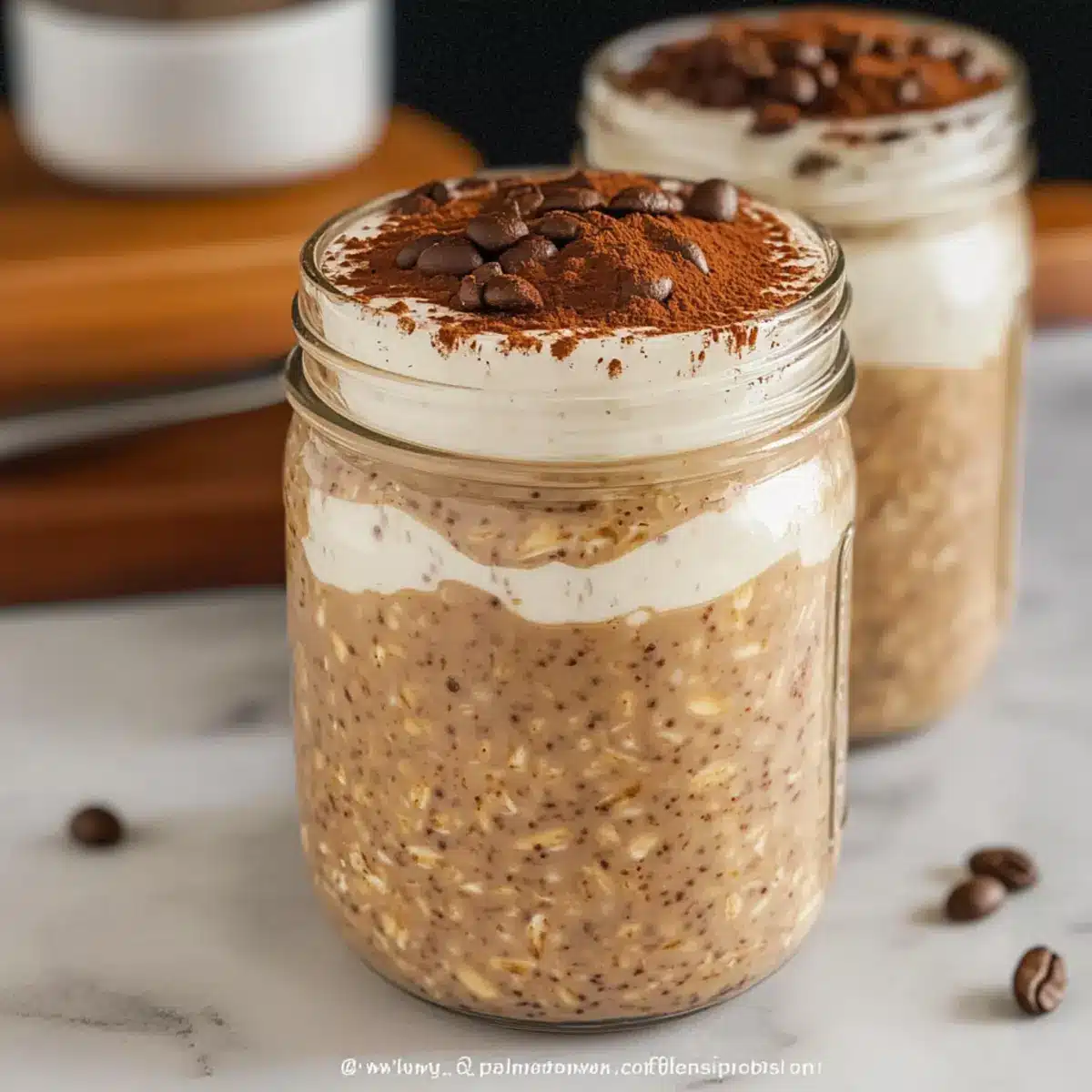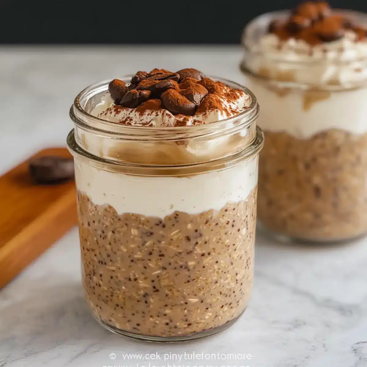 Just before serving, consider dusting the top of the yogurt layer with cocoa powder for an authentic tiramisu touch. This not only enhances the flavor but also adds a beautiful finish. Your Tiramisu Overnight Oats are now ready to be enjoyed straight from the jar or topped with your favorite fruits or nuts for extra texture!