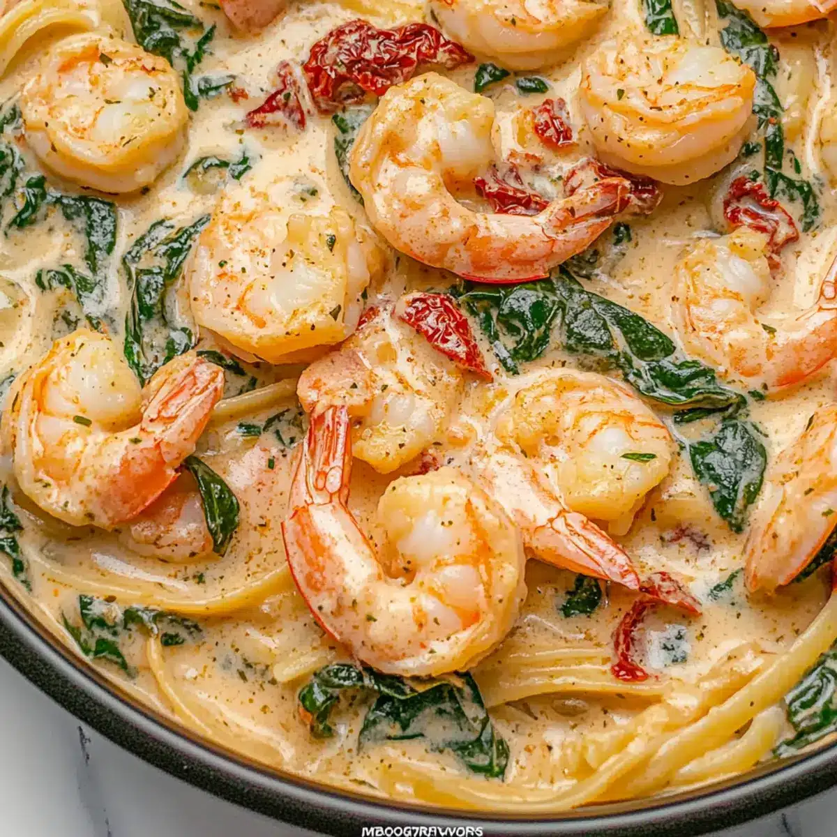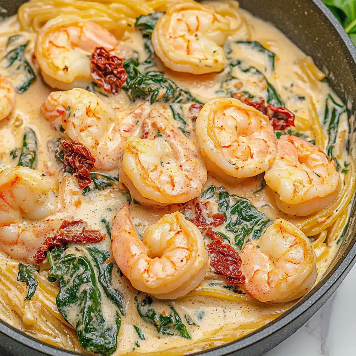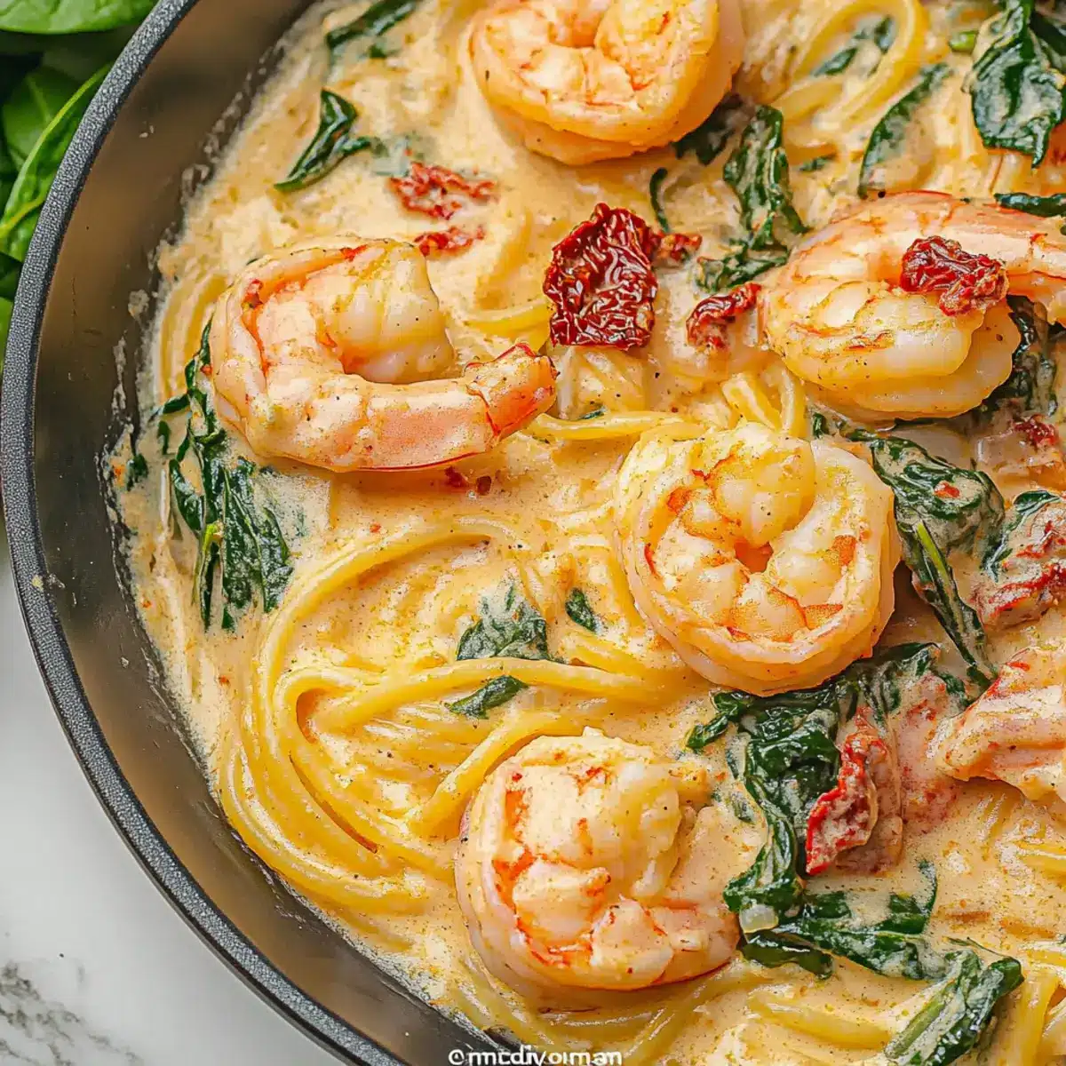 These Creamy Tuscan Shrimp Pasta preparations are a game changer for busy weeknights! You can season and sear the shrimp up to 24 hours before cooking; simply store them in the refrigerator to maintain their freshness. The sauce can also be made in advance—prepare it up to 3 days ahead and refrigerate it in an airtight container. When ready to serve, just reheat the sauce in a skillet, toss in the fresh spinach and sun-dried tomatoes, and then add the shrimp for a quick finish. This method ensures your meal is just as delicious and allows you to cut down on cooking time when it counts most!