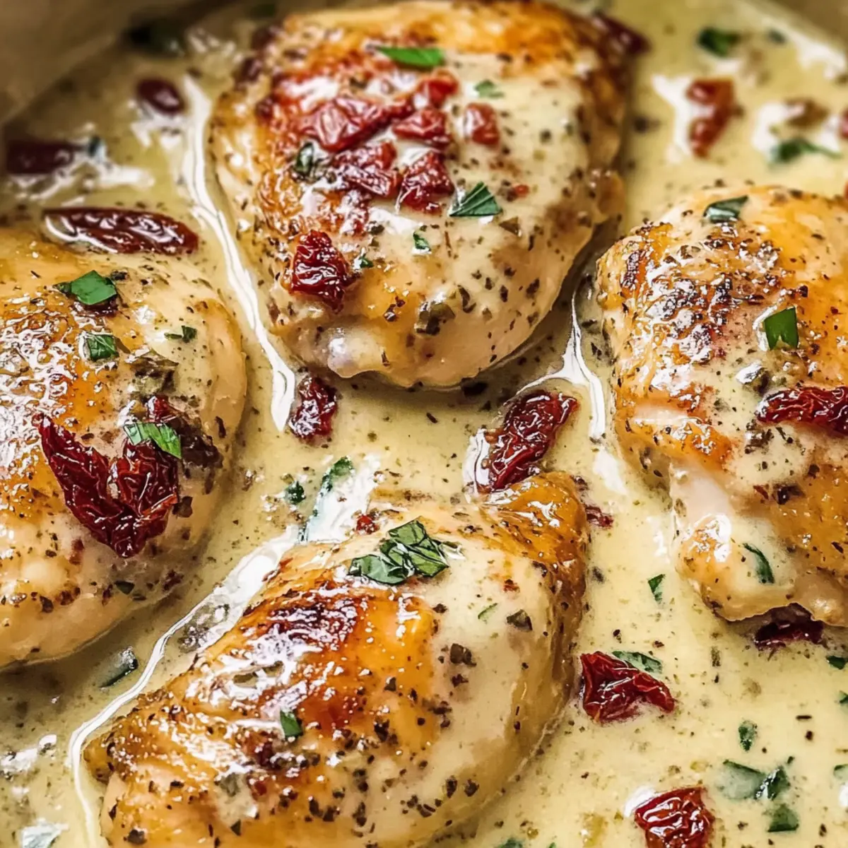 No worries! If your sauce thickens up after refrigeration or freezing, simply reheat the chicken in a skillet over low heat. Add a splash of heavy cream or chicken broth while stirring to achieve that creamy consistency again.