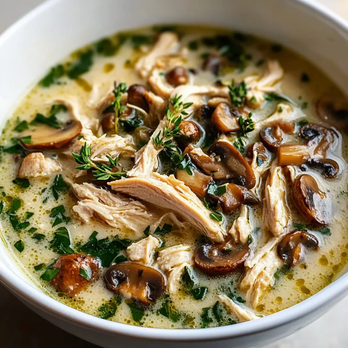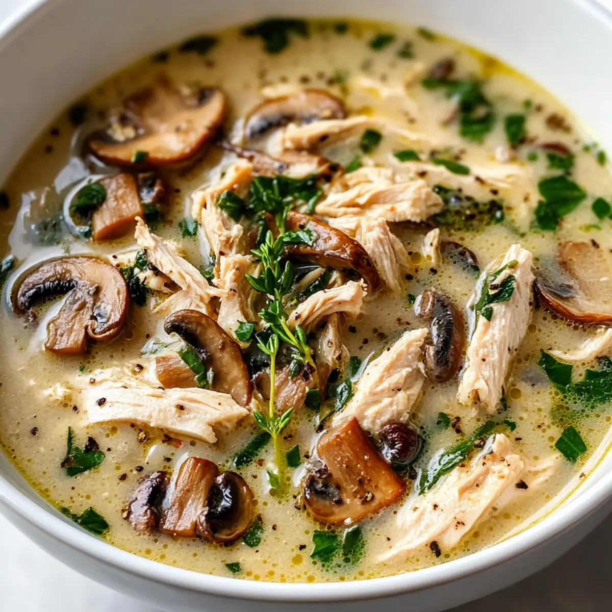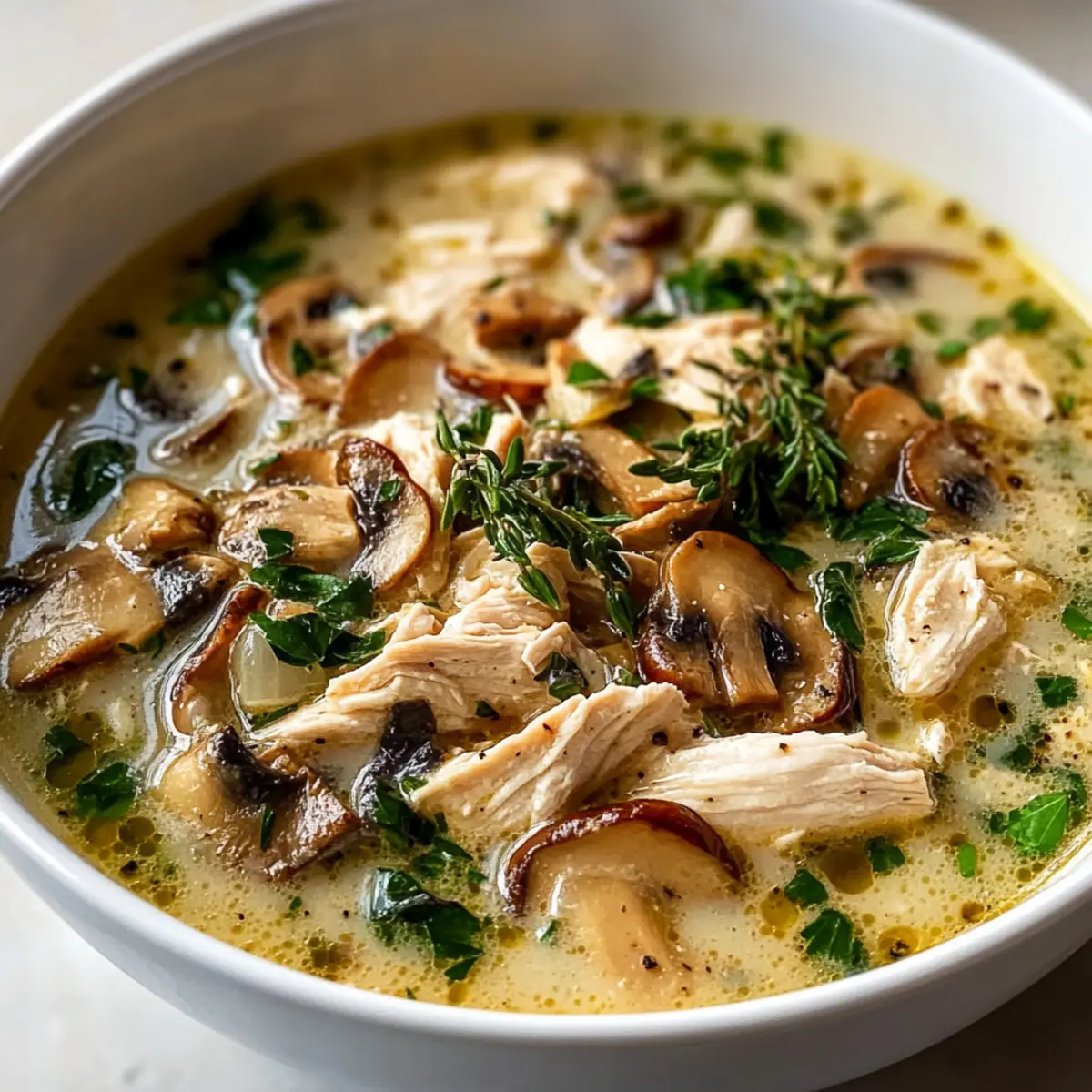 Once heated and the flavors are beautifully combined, taste for seasoning and adjust with more salt and pepper if necessary. Ladle the soup into warm bowls, ensuring each serving is filled with tender chicken and rich mushrooms, and serve immediately for a delightful family-friendly meal that everyone will adore.